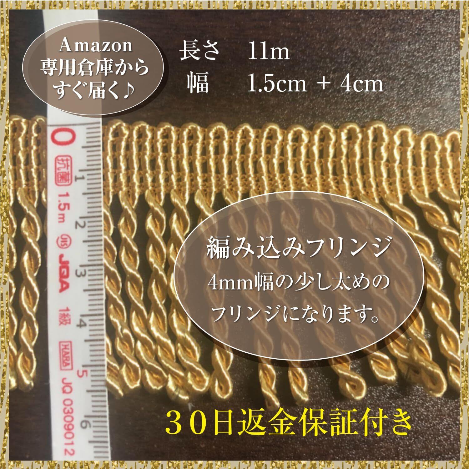 フリンジ 金 ゴールド 11メートル ツイストフリンジ 縒り房 タッセル フリンジテープ 装飾フリンジ レース 手芸 (ゴールド)