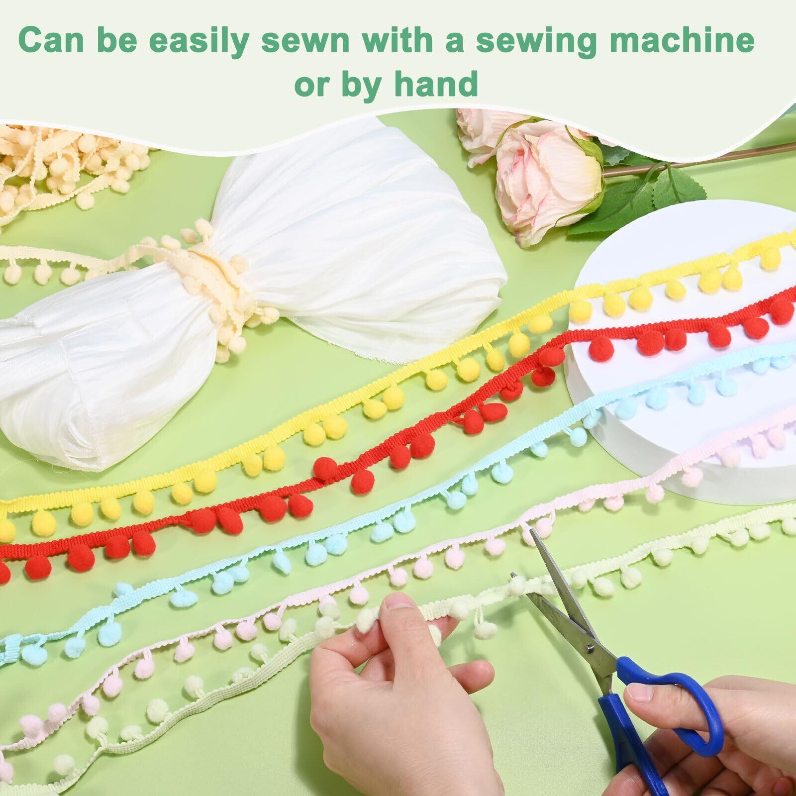 [独特なポンポンフリンジトリム] - 当社の縫製用ポンポントリムはナイロン糸で作られており、耐摩耗性と耐しわ性があり、長い間美しさと完全性を保つことができます。触り心地が軽く快適で、弾力性があり、すぐに形を戻すことができ、変形を防ぎます