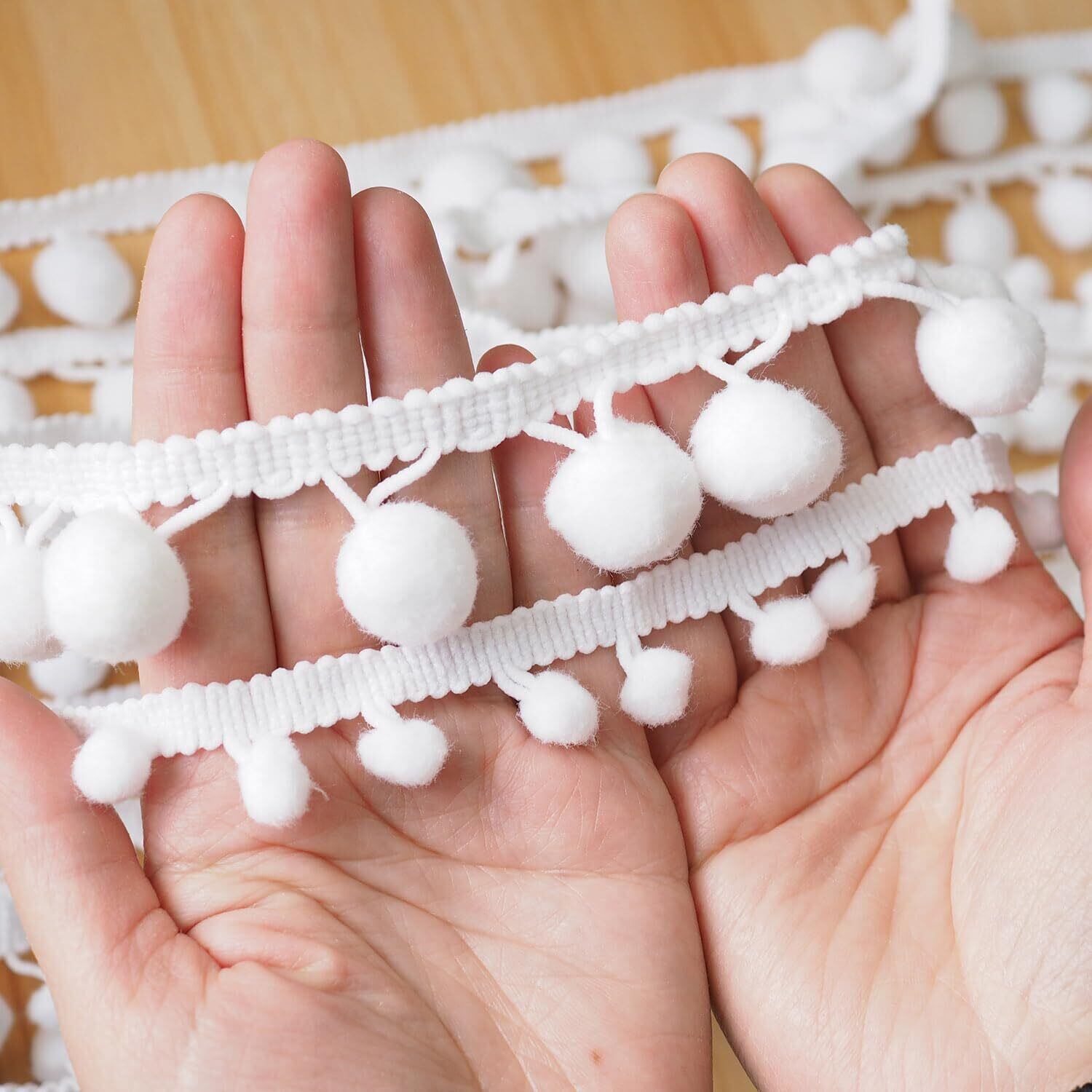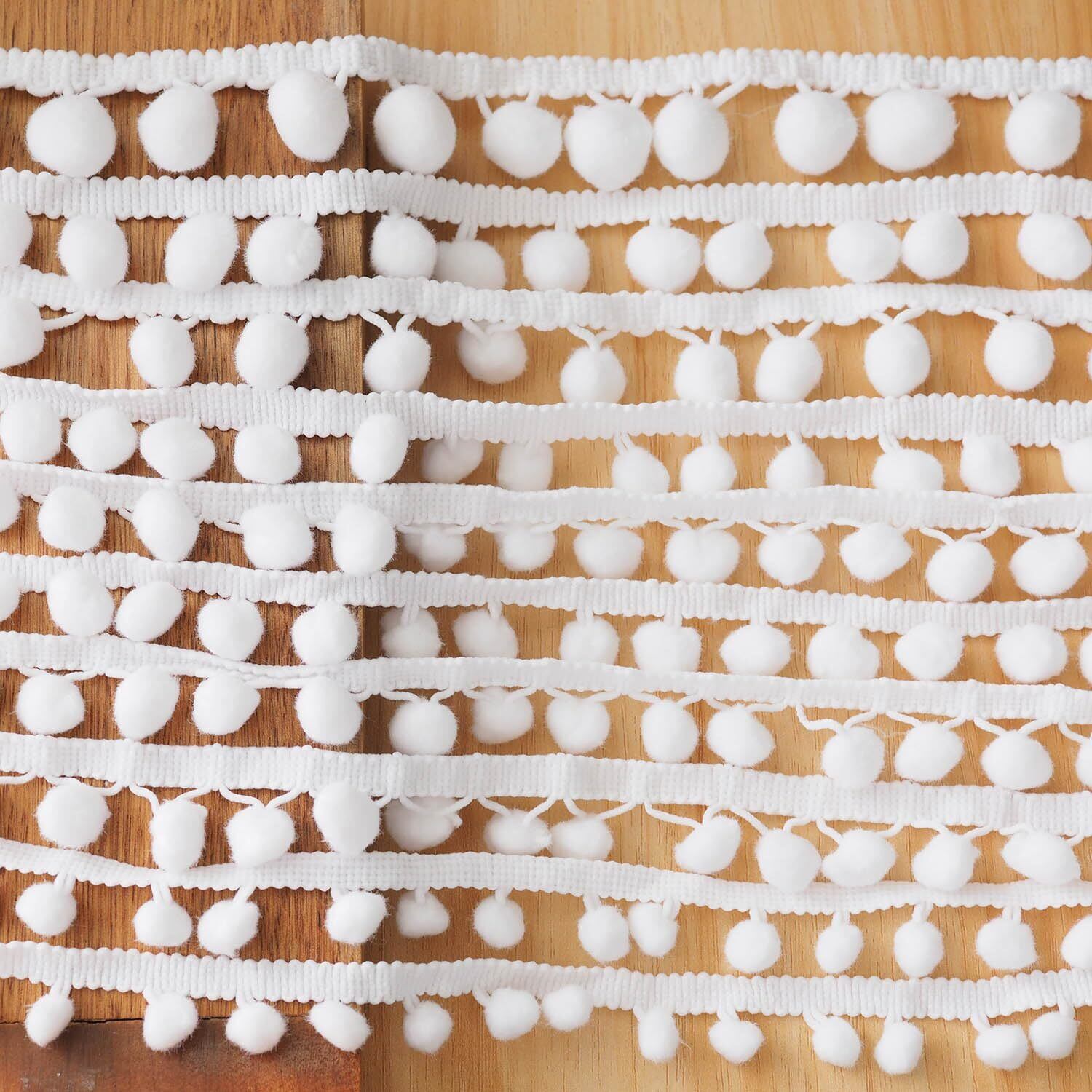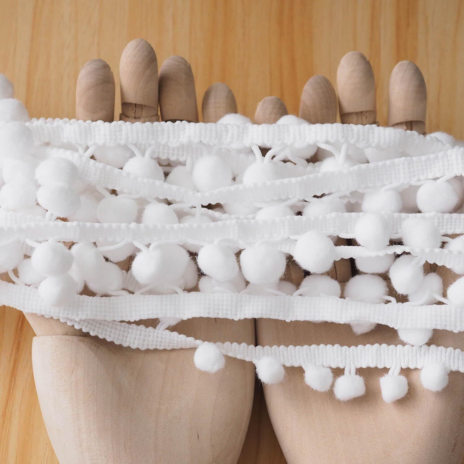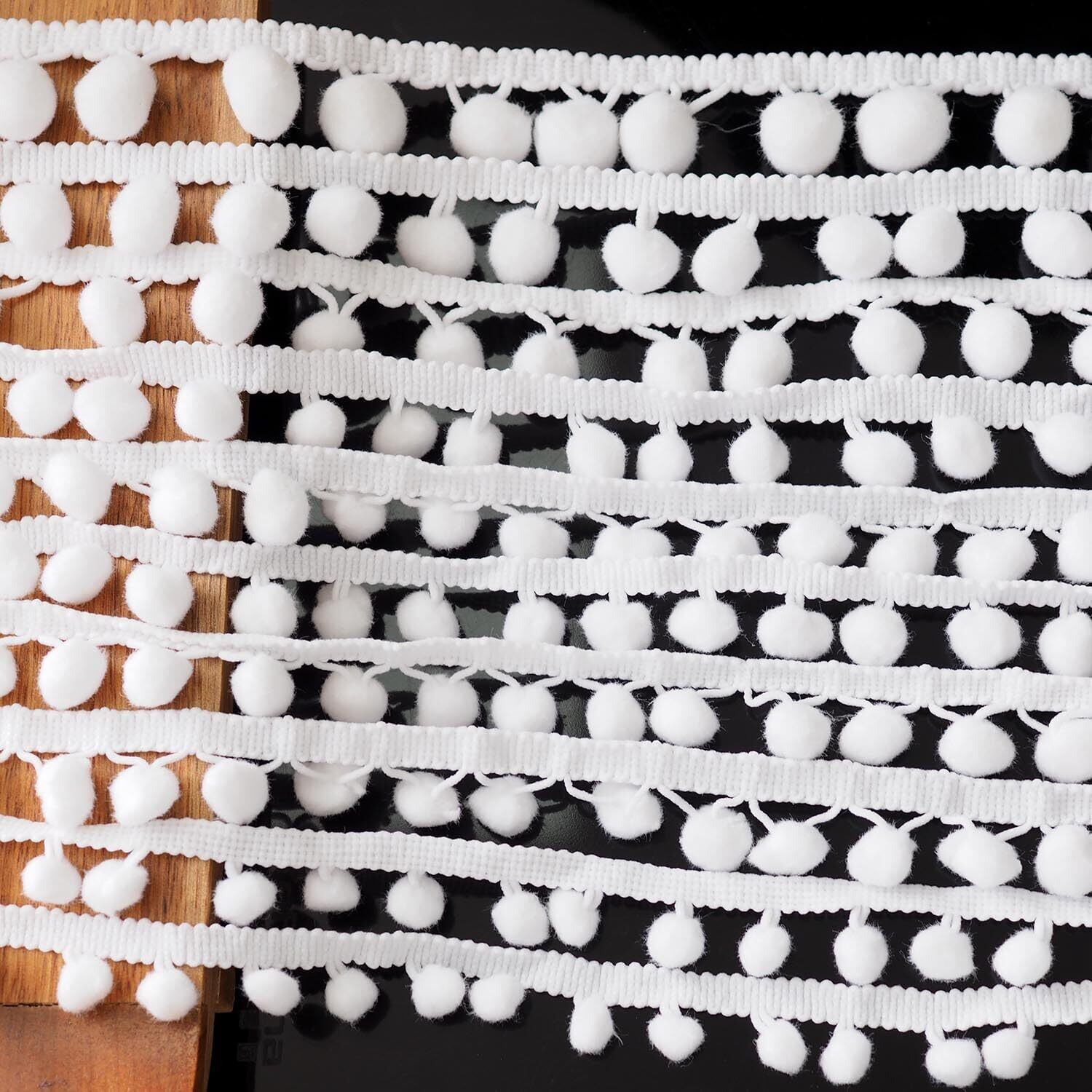 【パッケージ内容】: ホワイトのポンポンフリンジ,各3ヤード、合計30ヤード。クリエイティブなDIYや手芸プロジェクトのための必須アイテムです。