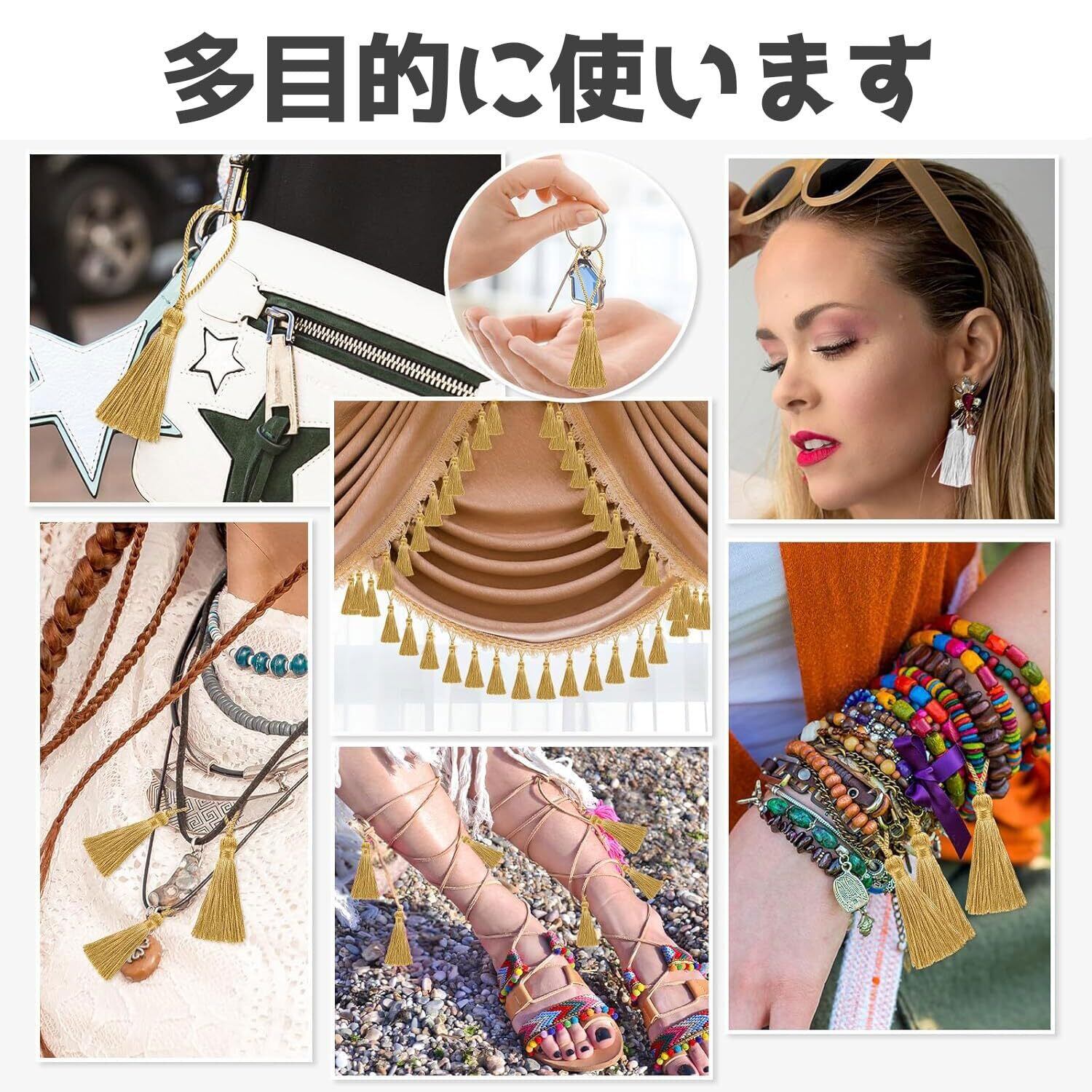 *おしゃれなタッセルは、衣装やアクセサリーの装飾として非常に優れています。キーホルダーとしても用いることができ、携帯電話やバッグに付け加えるだけで、いつものスタイルに新しいアクセントを加えることができるでしょう。その多様性は、日常的なアイテムを特別なものへと格上げします。チャームとしても使用でき、パーソナライズされたタッチを追加すると同時にファッションへのセンスも表現できます。
