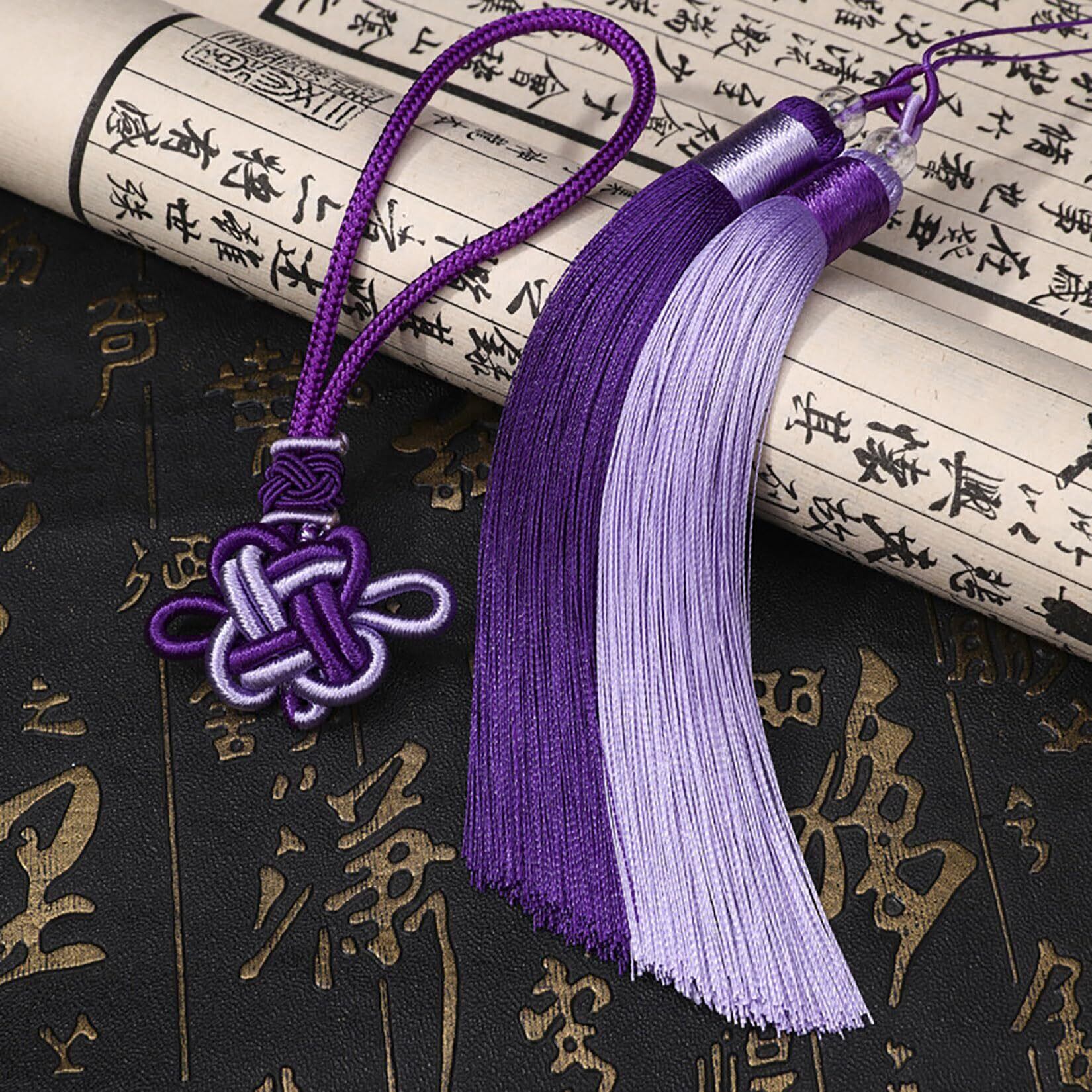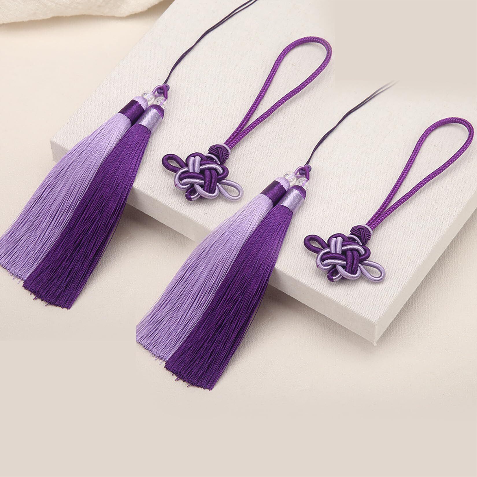車用吊り飾り 中国結び 約26cm 手編み あわじ結び風 双色房付き タッセル お守りデザイン 車内装飾 ルームミラー掛け ハンドメイド 縁起物 2本セット 濃紫×淡紫