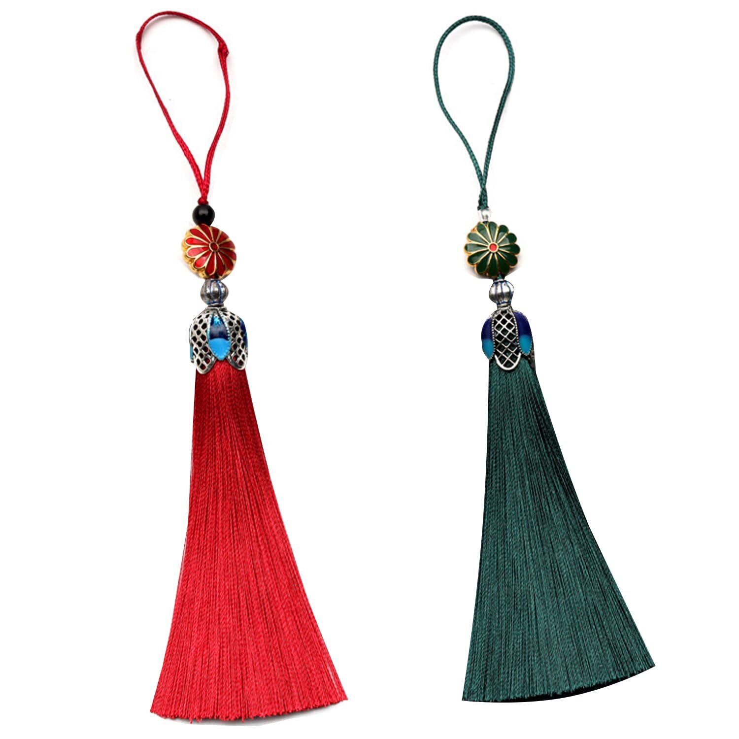Stoooduo タッセル カラフル 飾りタッセル 2本セット 手芸用品 アクセサリーパーツ 手作り素材 ロブスタークラスプ付き タッセル 部屋飾り用 扇子飾り カラータッセル