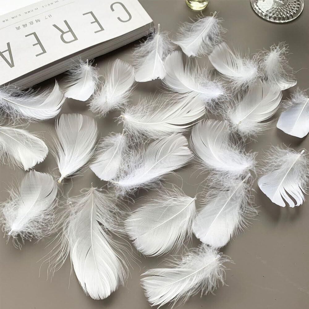 1パックに100枚の羽根が入っています。たっぷりとした量なので、大規模な装飾や複数のクラフトプロジェクトに最適です。純白の羽根は用途が広く、染色も容易で、エレガントでロマンチック、あるいは純粋な雰囲気を演出します。最も伝統的な用途です。結婚式(挙式)では、ゲストが新郎新婦に羽根を投げ、伝統的な紙吹雪や米の代わりに、写真映えする夢のようなロマンチックな瞬間を演出します。DIYクラフトに最適な素材です。ジュエリー(イヤリング、ネックレス、羽根ペン)、帽子飾り、衣服の装飾、ギフトラッピングの装飾などに最適です。
