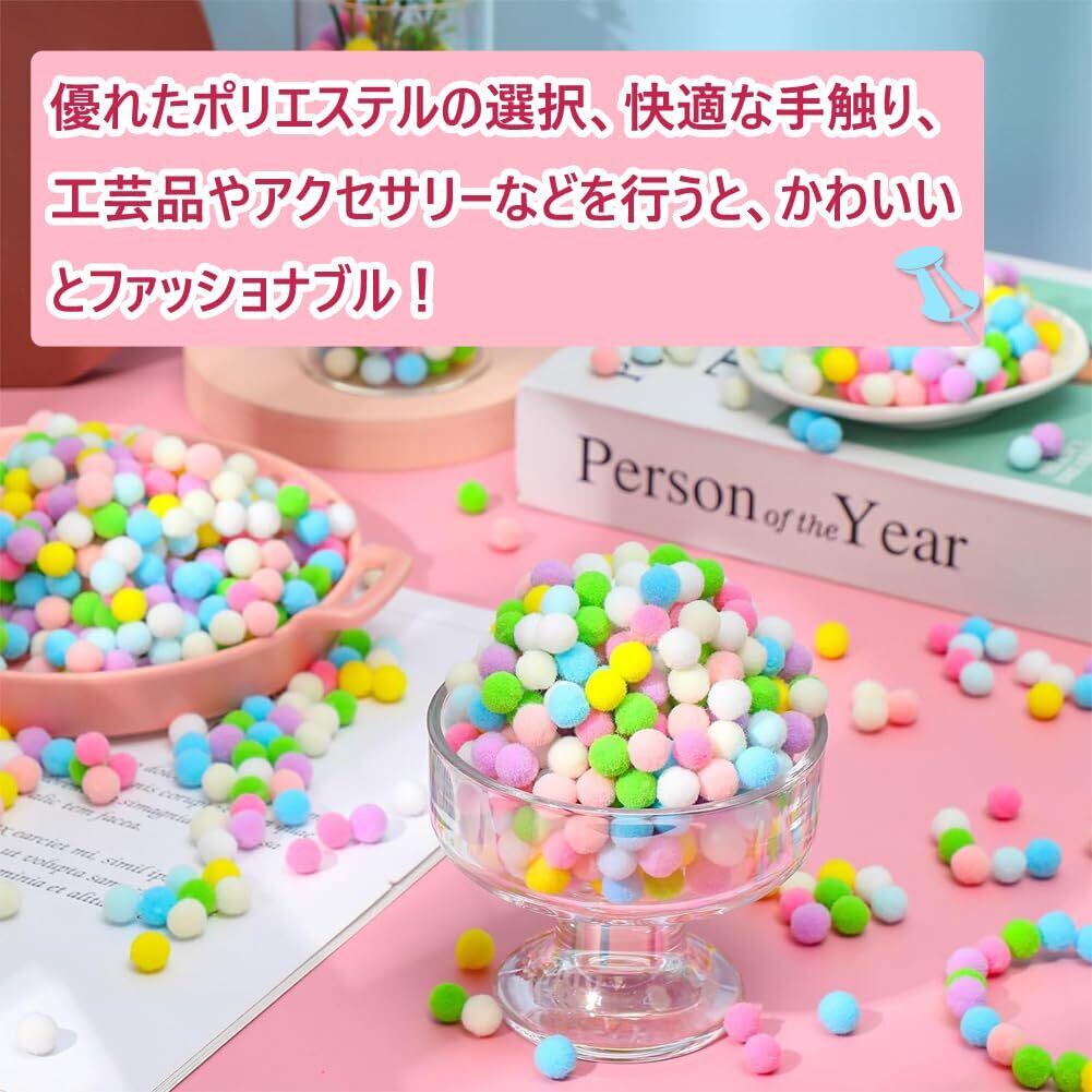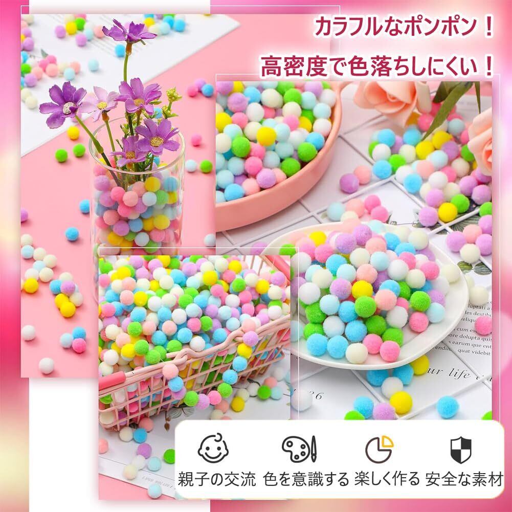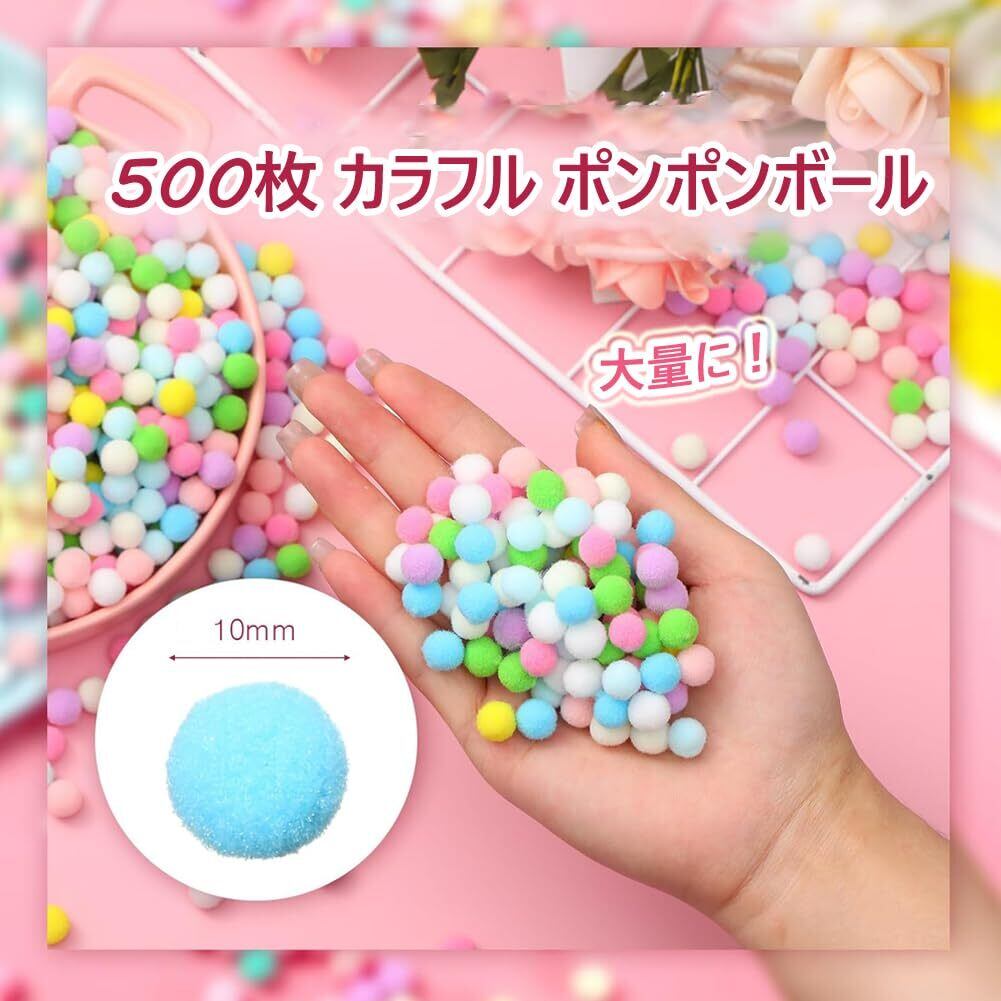 【パッケージ内容】ポンポンボール約500個。 サイズ:直径約10mm、カラー:キャンディカラー(ランダム)。 フェルトボールのような球状の手作りボール。 DIYに最適な素材です。