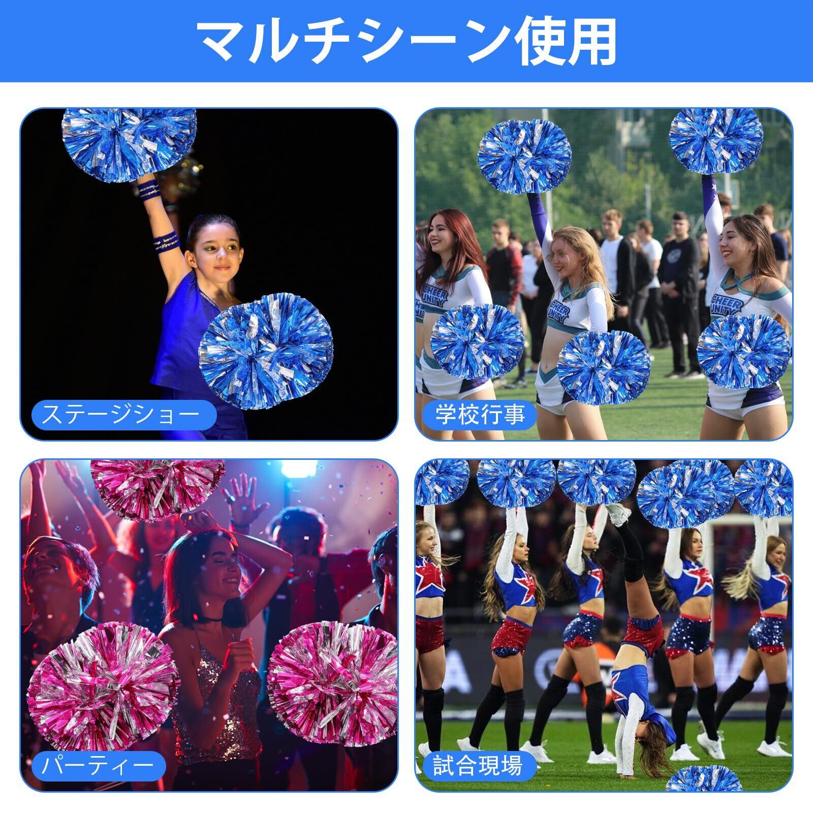プレミアム素材:✨耐久性のあるPET素材を使用したポンポンは、軽量で無毒、そして耐久性に優れています。破れにくく色褪せしにくいアルミホイルに、手編みのカラフルなストリーマーをあしらうことで、ふわふわでファッショナブルな仕上がり。競技会、パフォーマンス、パーティーなどで繰り返しお使いいただけます。