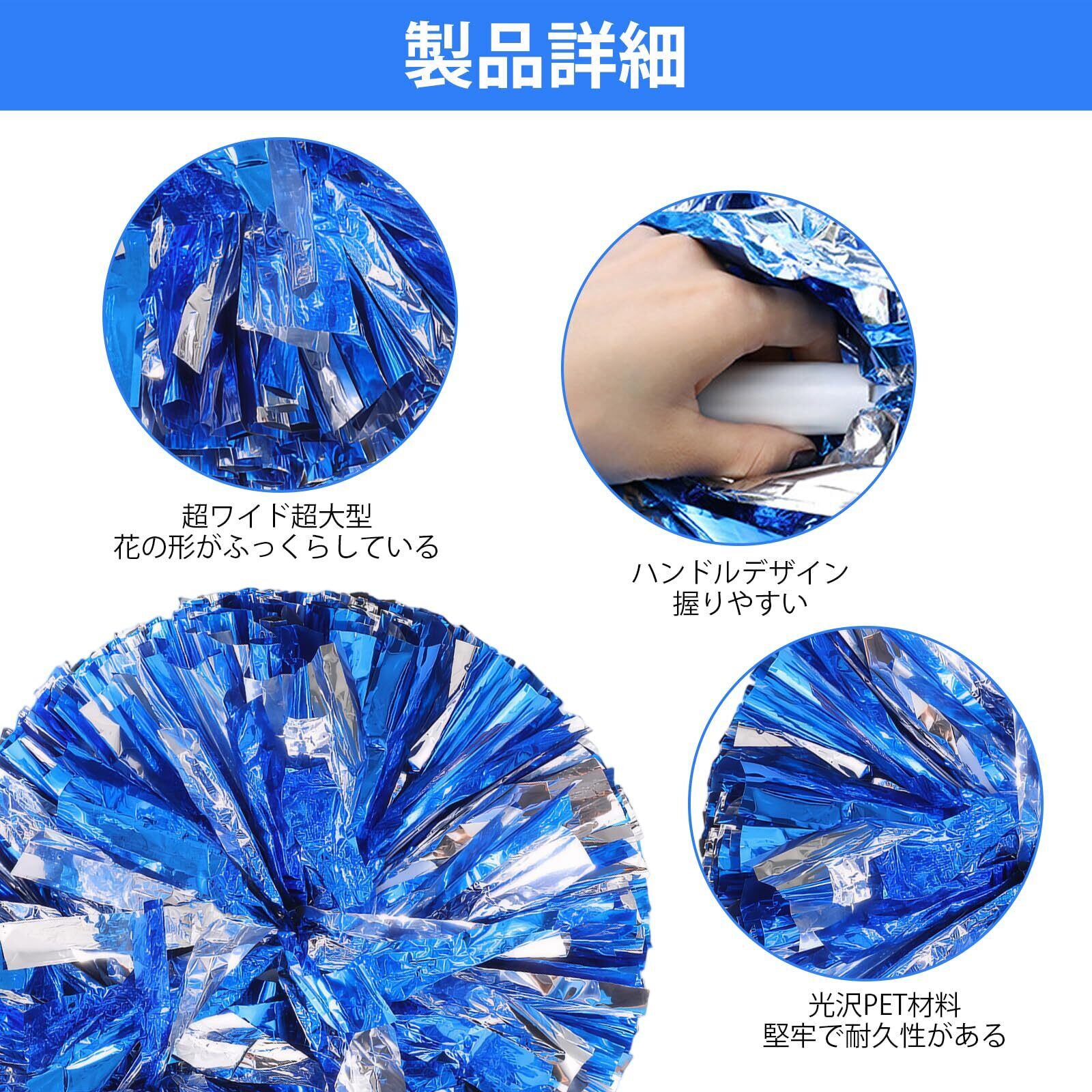 チアリーダー ポンポン 持ち手付き 4個セット メタリック ポンポン 2色 直径35cm キラキラ 応援用品 学校行事 スポーツ競技 イベント コスプレ 休日 お祝い 運動会 体育祭 学園祭 ダンス 発表会 お遊戯会
