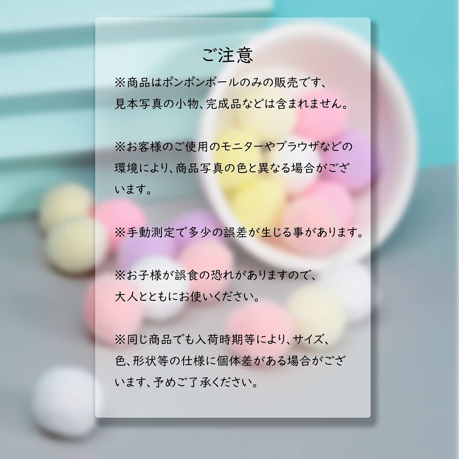 【ご注意】 ※商品はポンポンボールのみの販売です、見本写真の小物、完成品などは含まれません。 ※お客様のご使用のモニターやブラウザなどの環境により、商品写真の色と異なる場合がございます。 ※手動測定で多少の誤差が生じる事があります。 ※お子様が誤食の恐れがありますので、大人とともにお使いください。 ※同じ商品でも入荷時期等により、サイズ、色、形状等の仕様に個体差がある場合がございます、予めご了承ください。