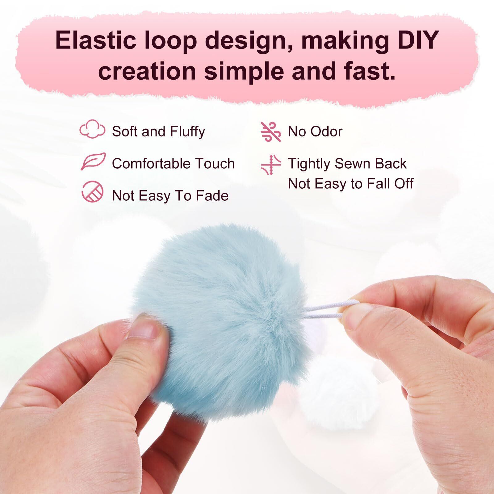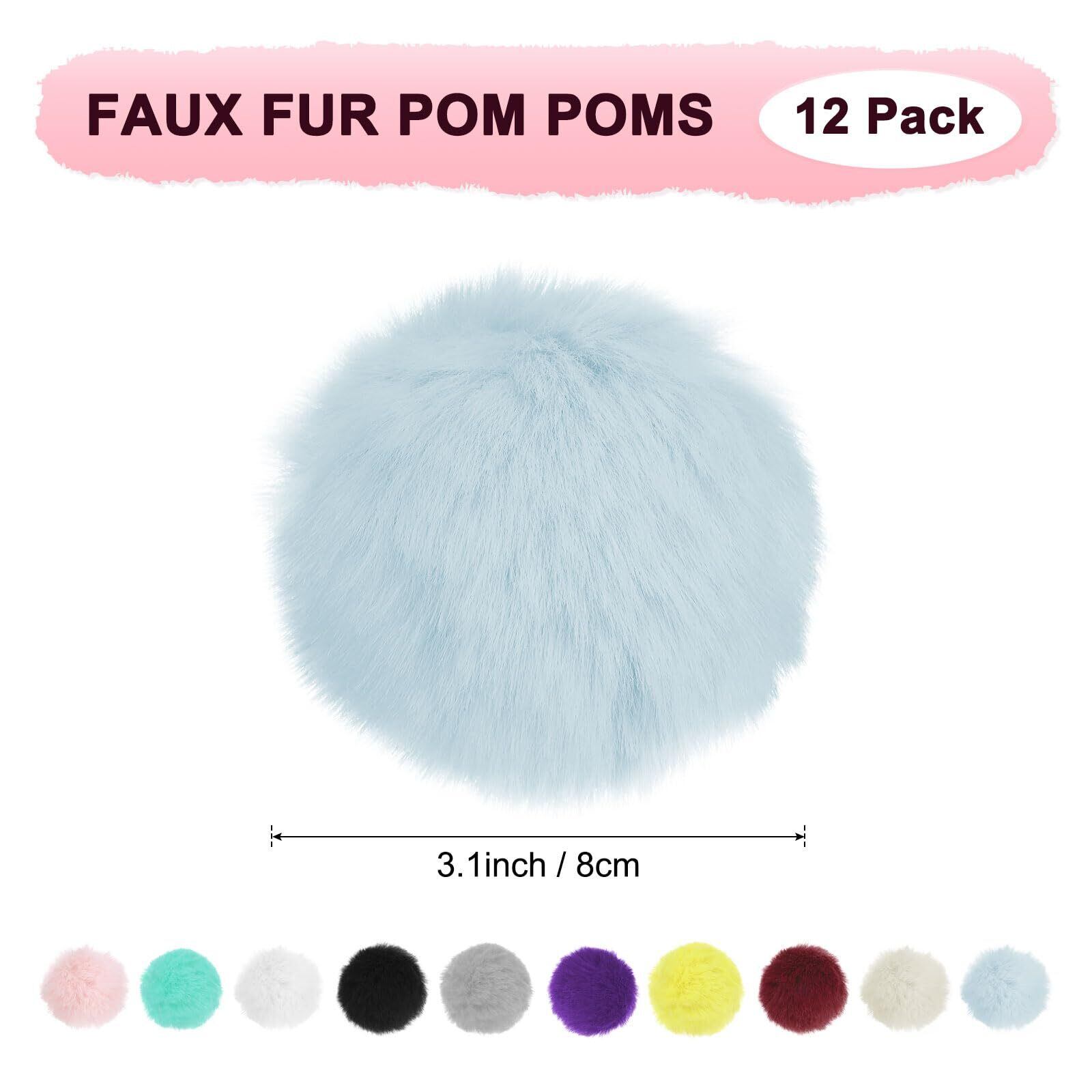 M METERXITY 12パックのフェイク毛皮のポンポン 3.1インチ/8 cmの柔らかくフワフワしたポンポンボール エラスティック ループ付きのフェイクラビットファー 帽子/バッグ/キーチェーン/ニットアクセサリー/DIYクラフト用