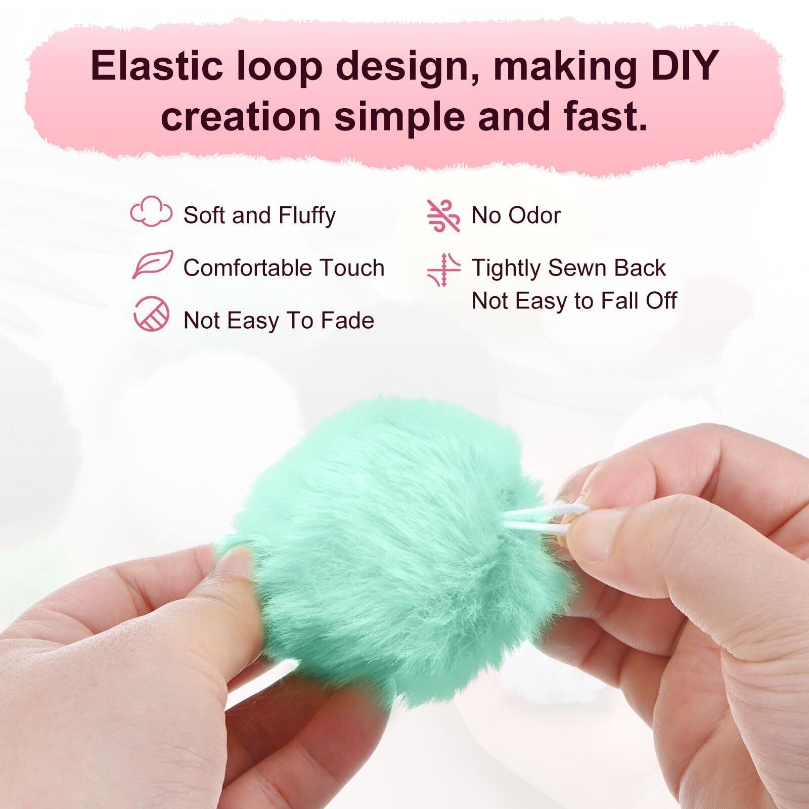 [利点] - 当社の人工プラッシュボールは、エラスティック ループ デザインを特徴とし、DIY作成を迅速かつ簡単にします。編んだ帽子、スカーフ、バッグなど、さまざまな素材に簡単に伸ばして取り付けることができ、しっかりと安定し、取れないようになっています