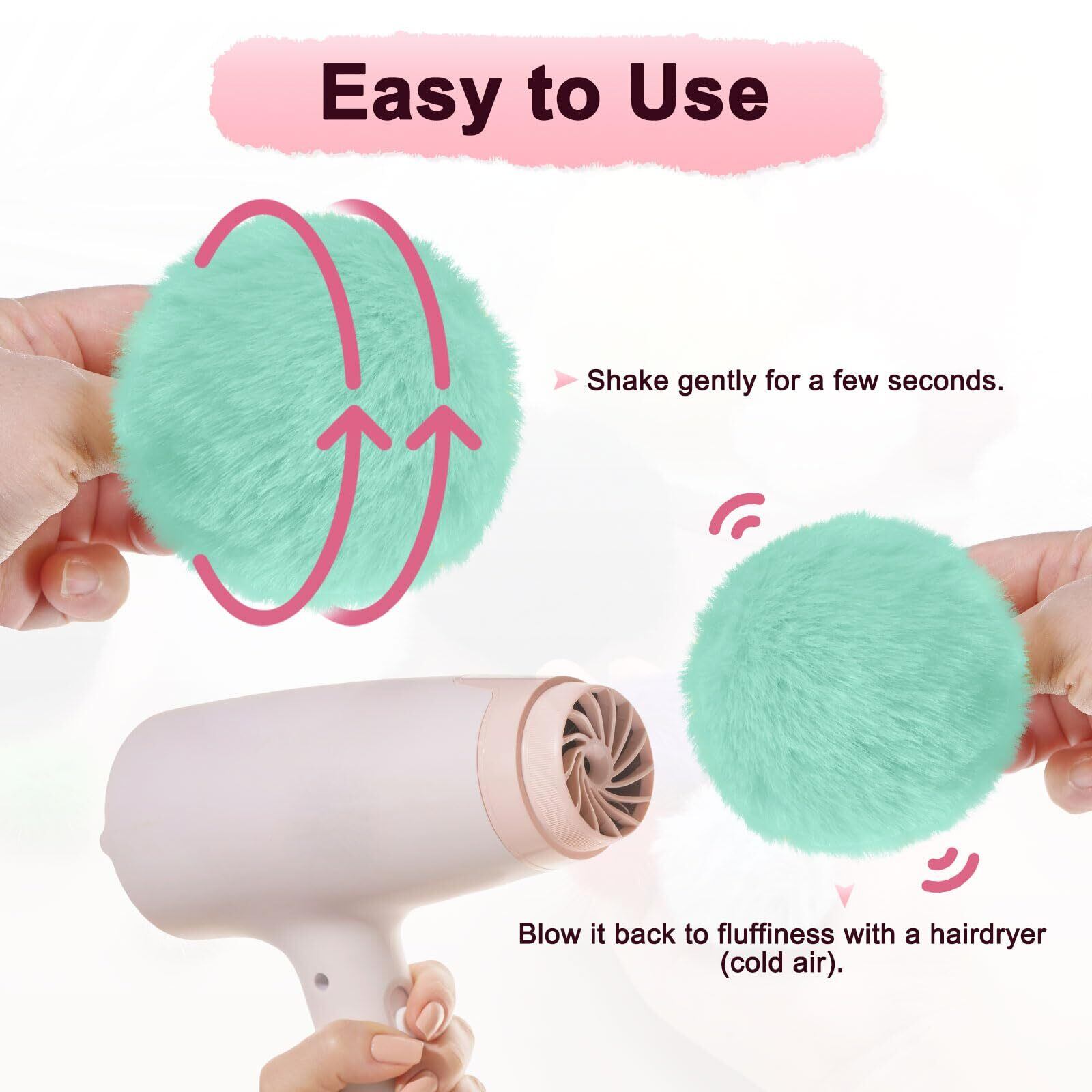 [注意] - ファーボールは輸送中にわずかに変形する場合があり、優しく振ったりヘアードライヤーを使用することでフワフワに戻ります。人工ファー素材には、いくつかの抜け毛が出ることがありますが、これは正常で使用に影響しません