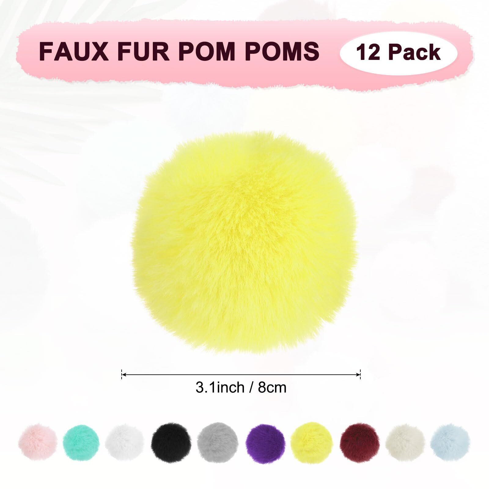 M METERXITY 12パックのフェイク毛皮のポンポン 3.1インチ/8 cmの柔らかくフワフワしたポンポンボール エラスティック ループ付きのフェイクラビットファー 帽子/バッグ/キーチェーン/ニットアクセサリー/DIYクラフト用