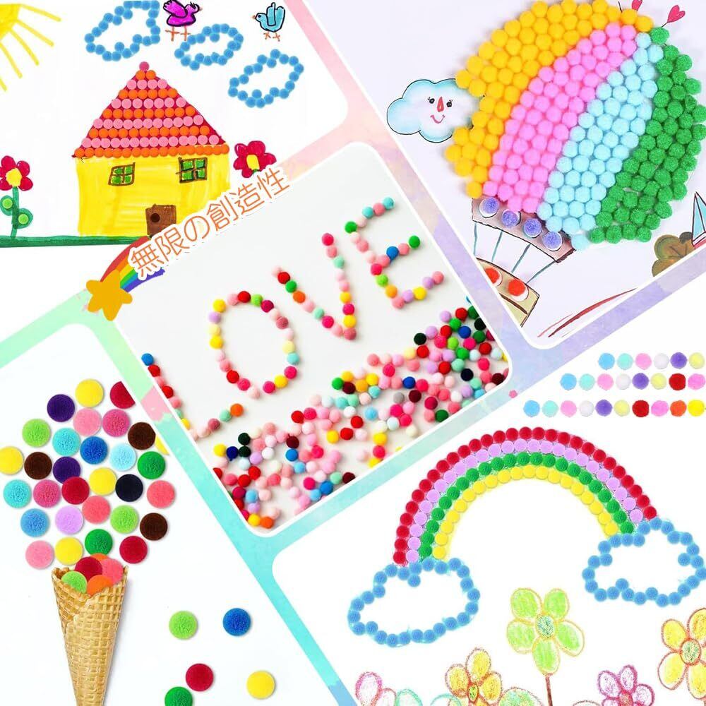 適切なサイズ:各ポンポンの直径は0.4in/1cmです。適切なサイズは、様々なクラフトや装飾のアプリケーションに使用するために非常に便利です。ひもでつないで吊り下げ飾りを作ったり、カードや額縁に直接接着したり、サイズのポンポンはよくフィットし、あなたの作品をより生き生きとした面白いものにします。手作りクラフトに無限の創造的可能性を加え、DIYプロジェクトをより生き生きとカラフルにします。