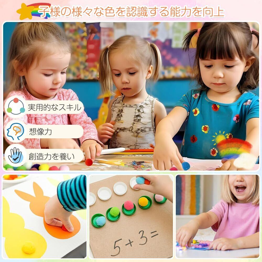 このカラフルなポンポンを使えば、お子様のDIYへの興味や嗜好を満足させるだけでなく、お子様の様々な色を認識する能力を向上させ、実用的なスキル、想像力、創造力を養い、手と目のコーディネーションを練習することができます。