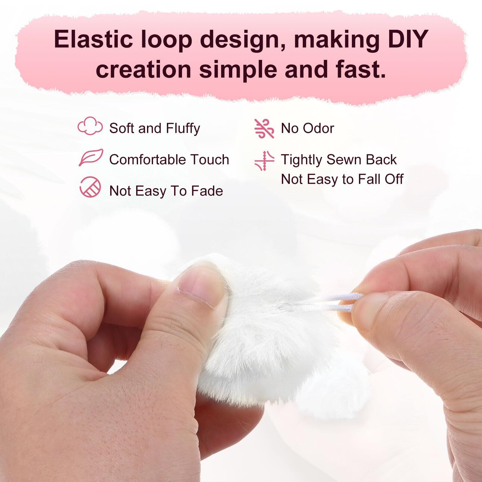 [利点] - 当社の人工プラッシュボールは、エラスティック ループ デザインを特徴とし、DIY作成を迅速かつ簡単にします。編み帽、スカーフ、バッグなど、さまざまな素材に簡単に伸ばして取り付けることができ、しっかりと安定し、取れないようになります