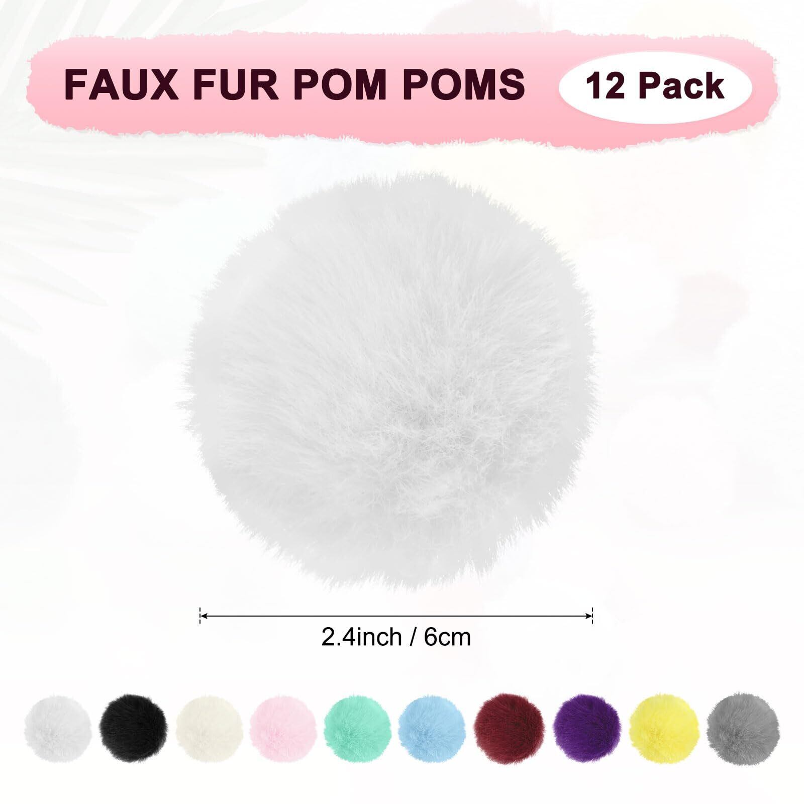 M METERXITY 12パックのフェイク毛皮のポンポン 2.4インチ/6 cmの柔らかくフワフワしたポンポンボール エラスティック ループ付きのフェイクラビットファー 帽子/バッグ/キーチェーン/ニットアクセサリー/DIYクラフト用