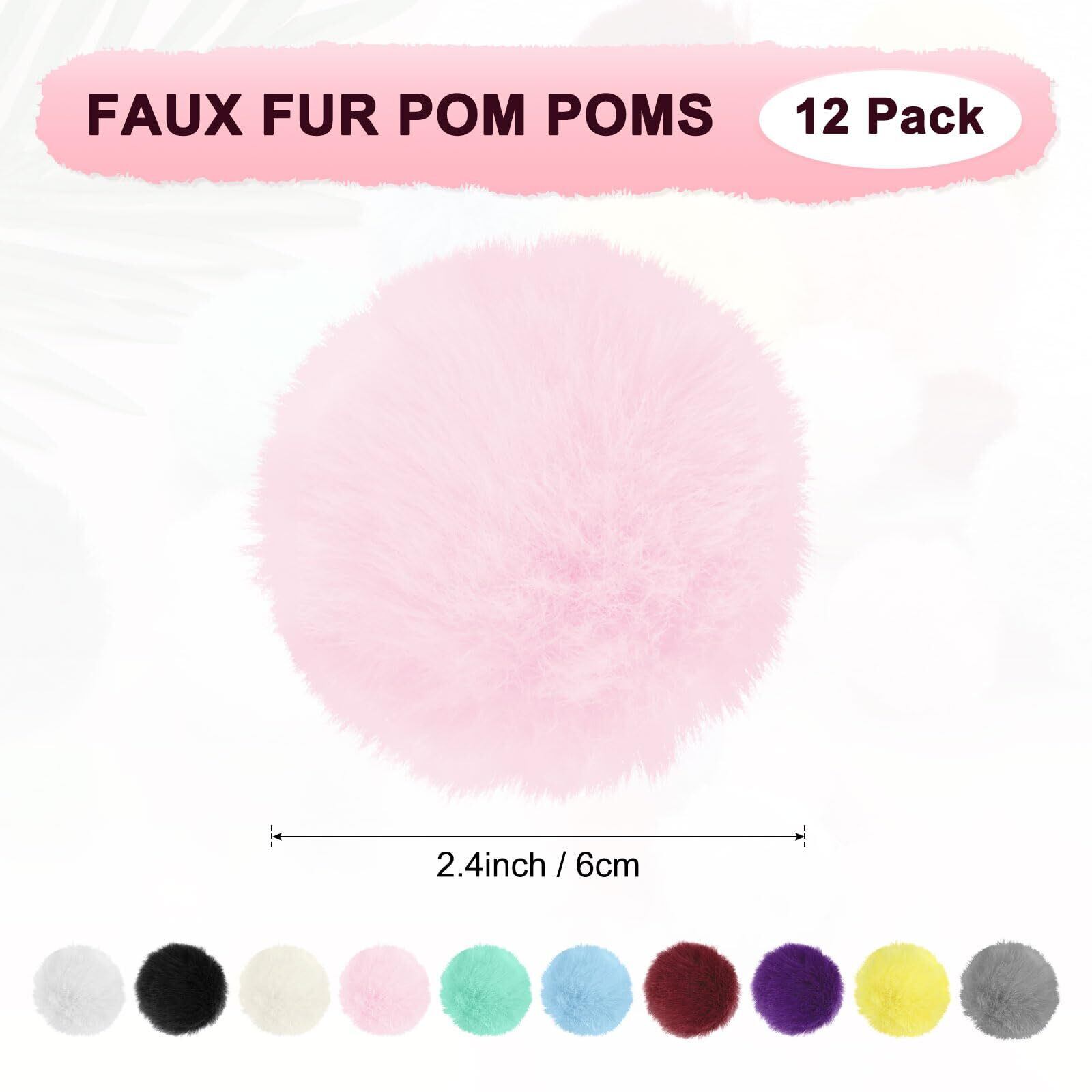 M METERXITY 12パックのフェイク毛皮のポンポン 2.4インチ/6 cmの柔らかくフワフワしたポンポンボール 帽子/バッグ/キーチェーン/編み物アクセサリー/DIYクラフト用のエラスティック ループ付きの人工ウサギ毛皮のポンポンボール