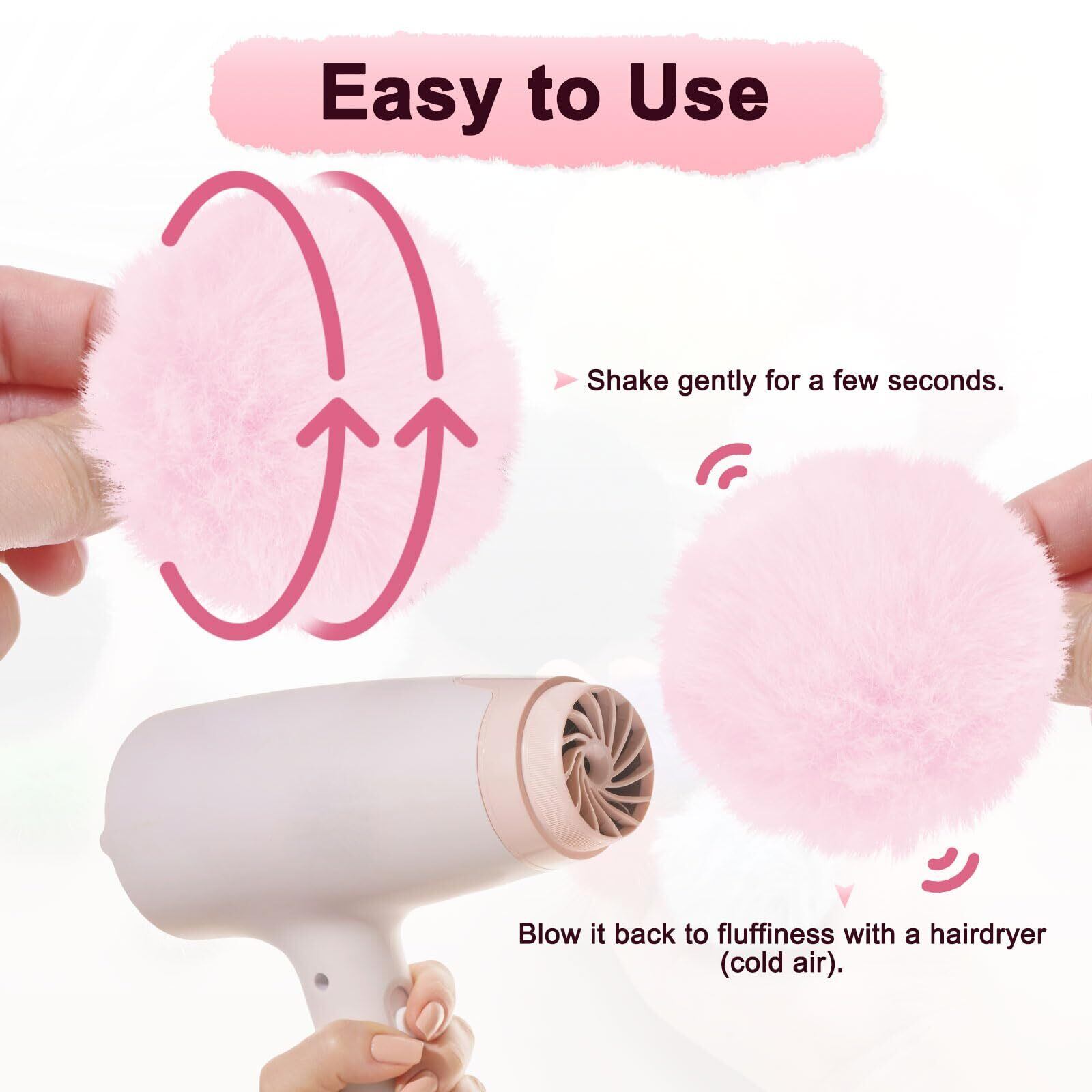 ファーボールは輸送中にわずかに変形する場合があり、優しく振ったりヘアードライヤーを使用することでフワフワに戻ります。人工ファー素材には、いくつかの抜け毛が出ることがありますが、これは正常で使用に影響しません。