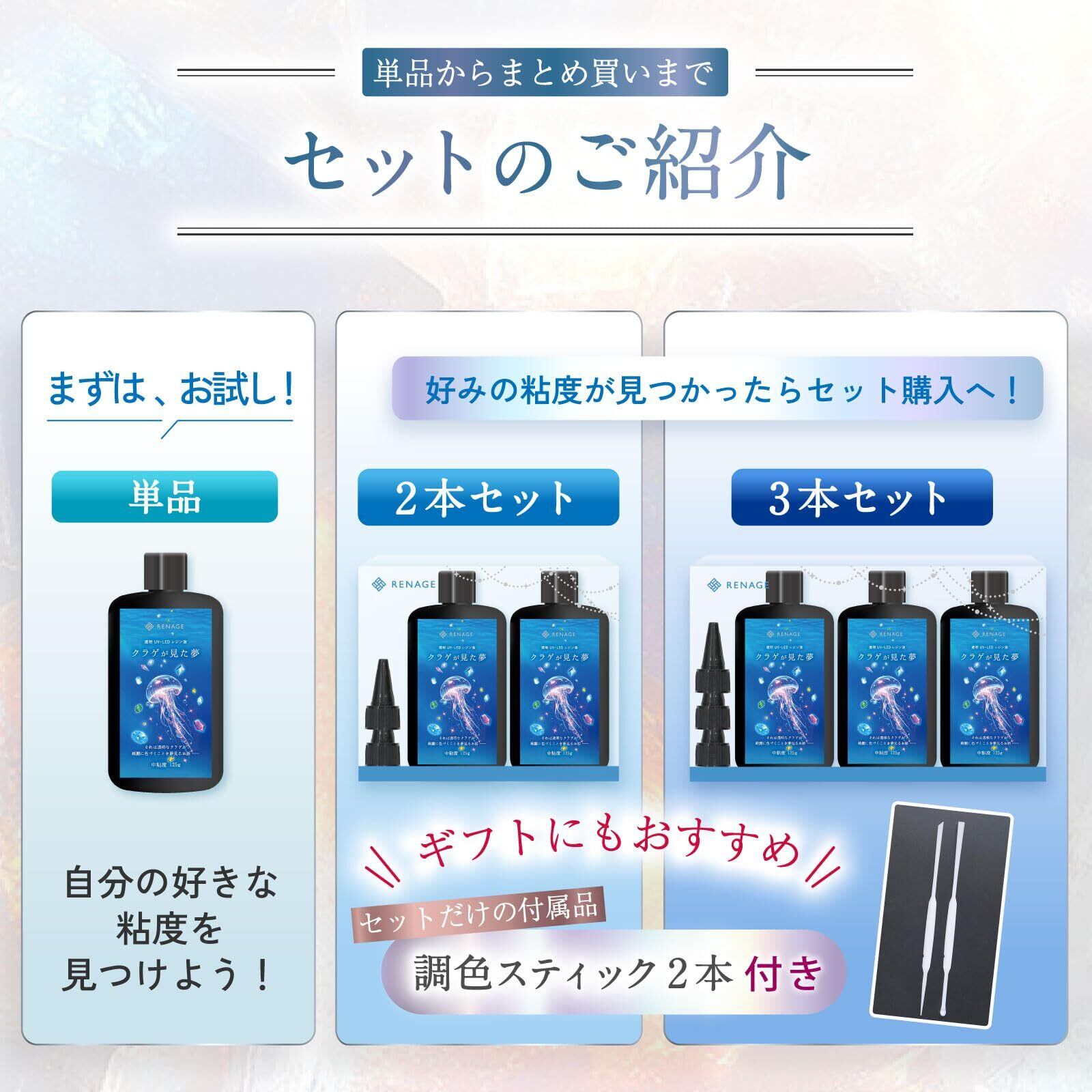 RENAGE レジン液 UV LED 大容量 250g 透明 ハードタイプ 高粘度 クラゲが見た夢 クリア オープナー付き ノズルキャップ付き フルカラー取扱説明書