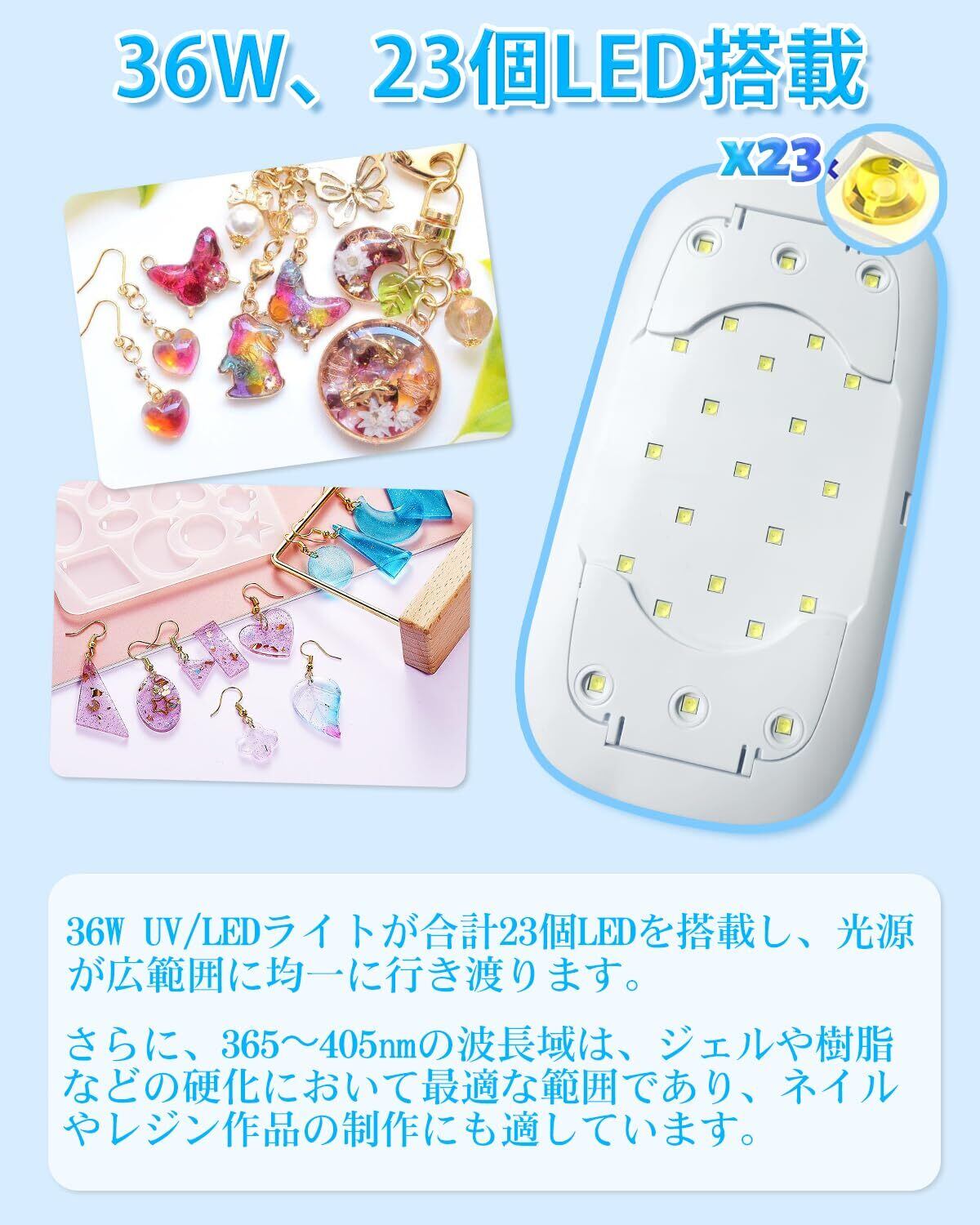 【数量限定】UVライト レジン用 硬化ライト 36W LEDネイルライト 折りたたみ式 ジェルネイル ライト UVレジンライト UVランプ 樹脂硬化用 UVレジンキット ジュエリー作り DIY クラフト