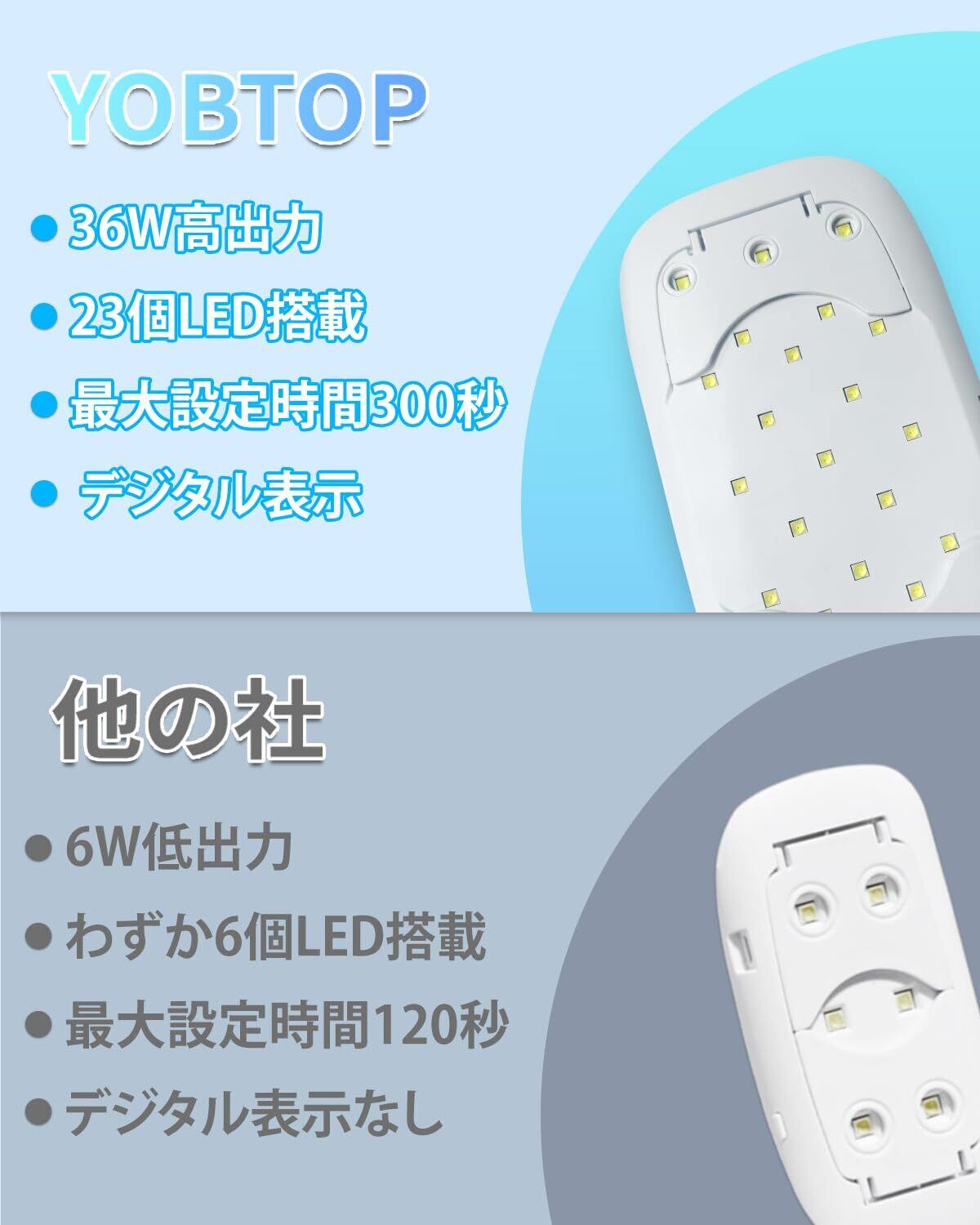 【UV-LED二重光源のUVライト】36W UVライトは23個の最新UV-LED二重光源を備えており、波長(365nm+405nm)、速乾対応を実現、短時間で硬化が完了します。UVレンジ作業や快適なハンド/フットネイル体験を提供します。