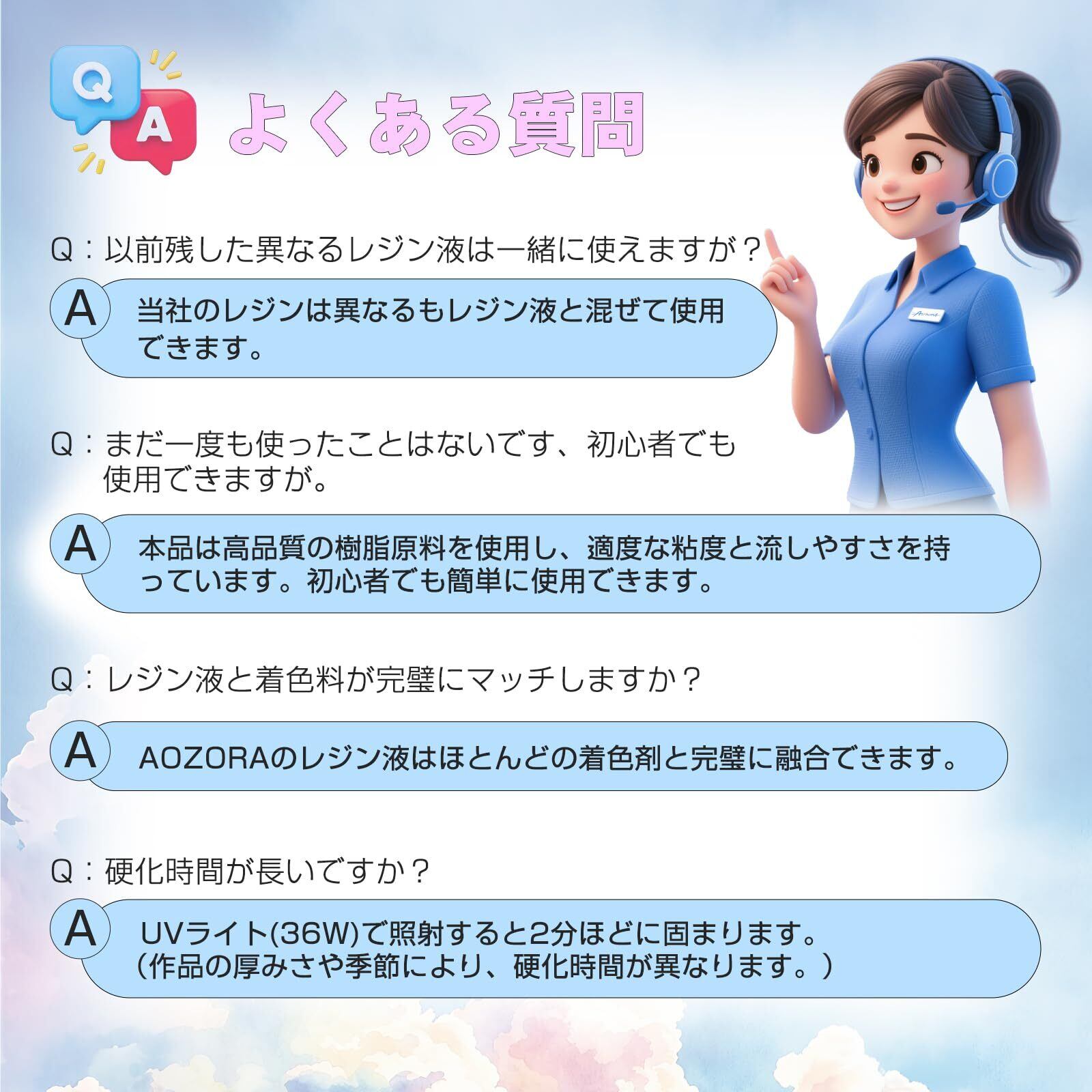 【プレミアムサービス】AOZORAのレジンは、10年以上の樹脂調製の経験を持つエンジニアのグループによって、無毒、無臭、VOCを含まず耐久性のある樹脂を使用しています。製品に不満や不明点がある場合は、いつでもお問い合わせください。