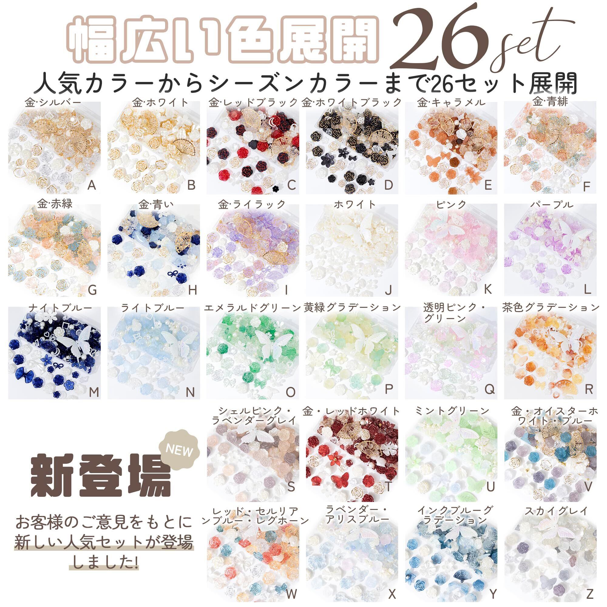 【カラーバリエーション・26セット展開】26セット展開には、金·シルバー、金·ホワイト、金·レッドブラック、金·ホワイトブラック、金·キャラメル、金·青緋(透明感がある)、金·赤緑(つや消し)、金·青い、金·ライラック、ホワイト、ピンク、パープル、ナイトブルー、ライトブルー、エメラルドグリーン、黄緑グラデーション、透明ピンク・グリーン、茶色グラデーション、シェルピンク・ラベンダーグレイ、金・レッドホワイト、ミントグリーン、金・オイスターホワイト・ブルー、レッド・セルリアンブルー・レグホーン、ラベンダー・アリスブルー、インクブルーグラデーション、スカイグレイが含まれています。セットにも様々なカラーがあり、好みの色やニーズに応じて選択することができます ※ロットによって画像にない細かな違いが出る場合がありますが、全体のテイストや色味は同じシリーズで統一されています。