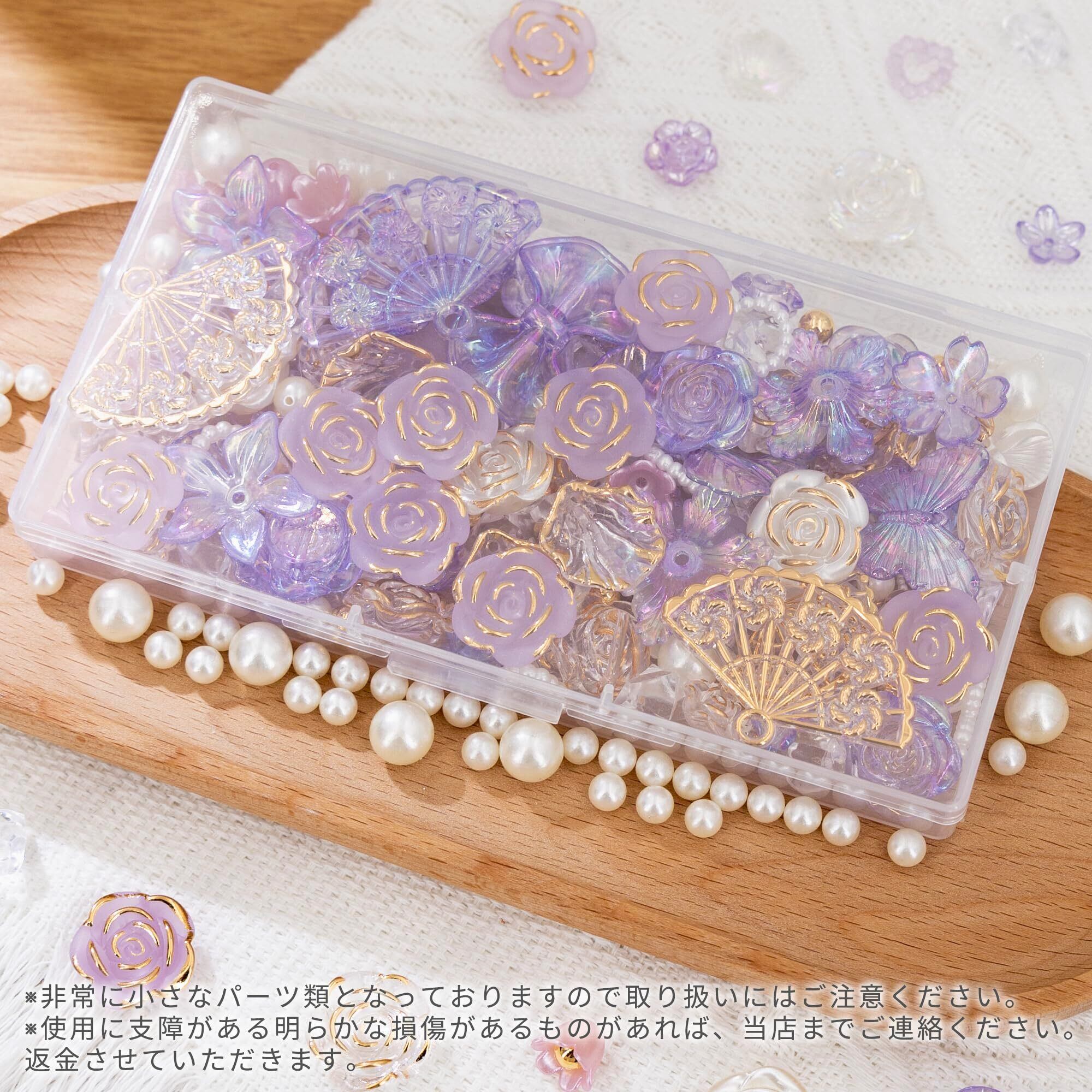 【数量限定】デコパーツ ビーズ ホイップデコ パーツ アクリル セット トレカ 硬質ケース デコ 手芸 ハンドメイド デコ 素材 可愛い デコレーション セット アクセサリー 薔薇 パール 貝殻 リボン 蝶 クリア デコトレカケース ロココ調 (金·ライラック)