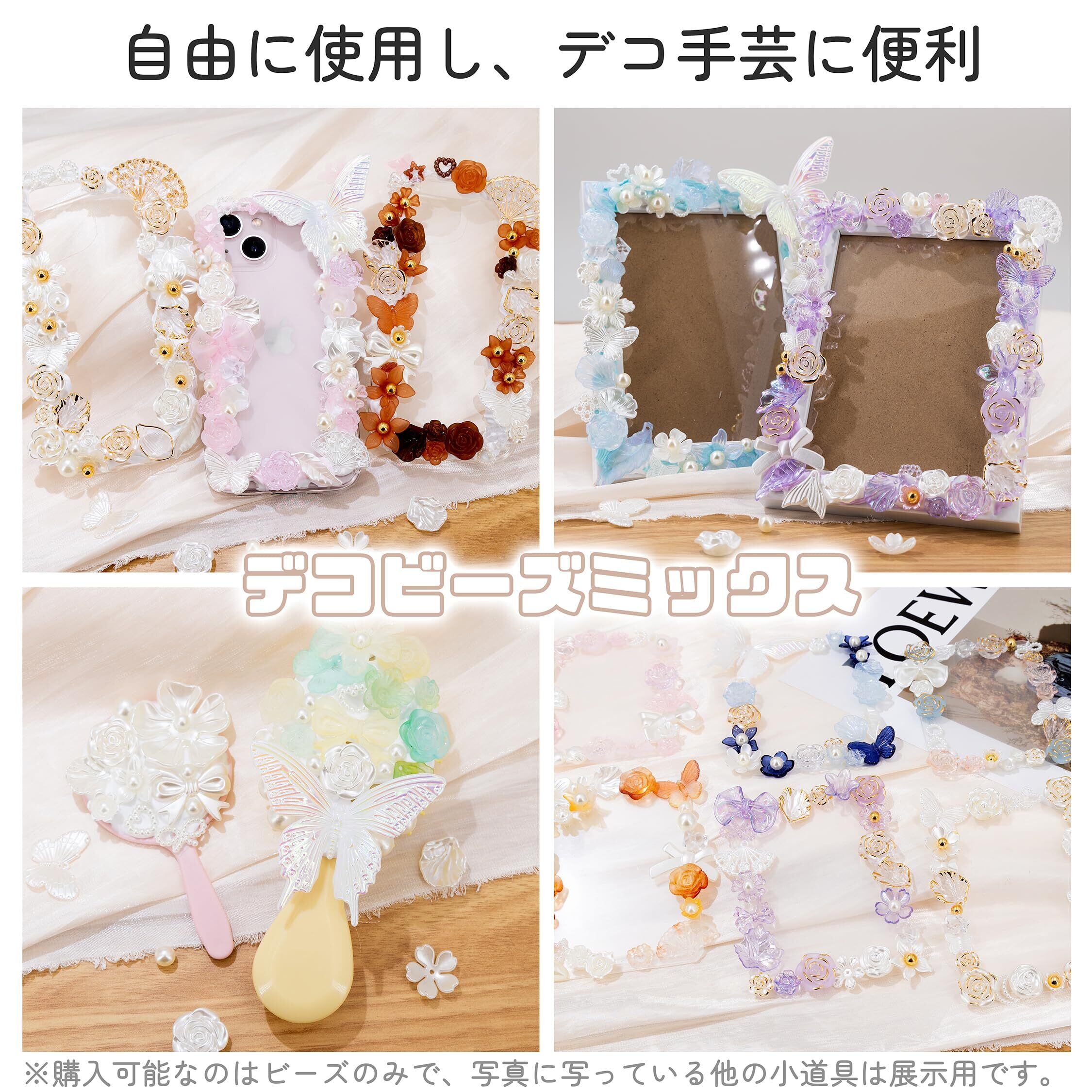 デコパーツ ビーズ ホイップデコ パーツ アクリル セット トレカ 硬質ケース デコ 手芸 ハンドメイド デコ 素材 可愛い デコレーション セット アクセサリー 薔薇 パール 貝殻 リボン 蝶 クリア デコトレカケース ロココ調 (金·ライラック)