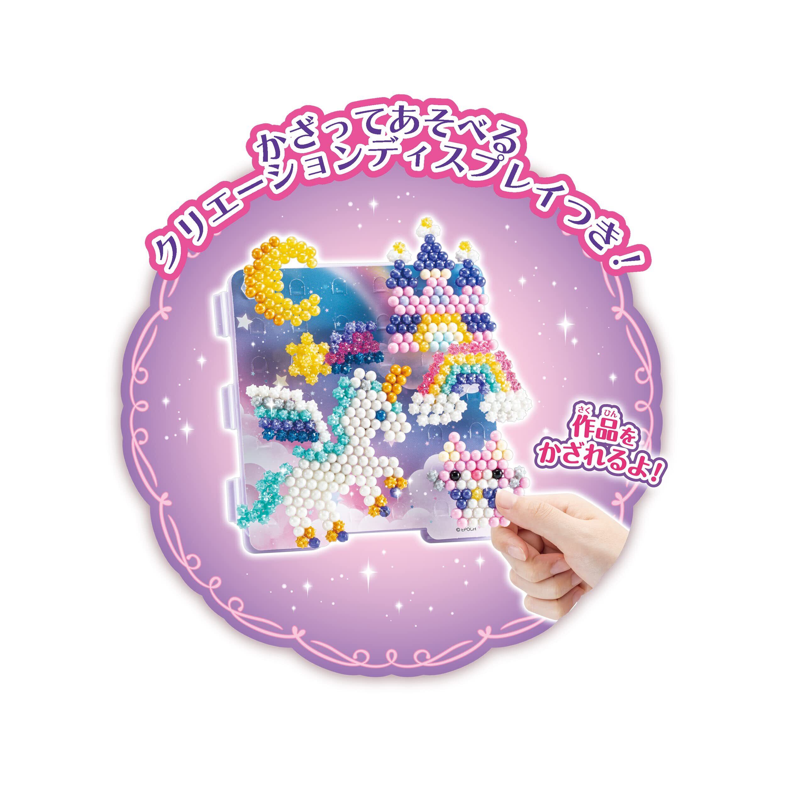 ※こちらの商品はビーズとイラストシートがセットになった商品です。 別売りのフリップビーズトレイまたはビーズトレイと専用きりふき、またはそれらがセットになったアクアビーズ商品と一緒にお楽しみください。