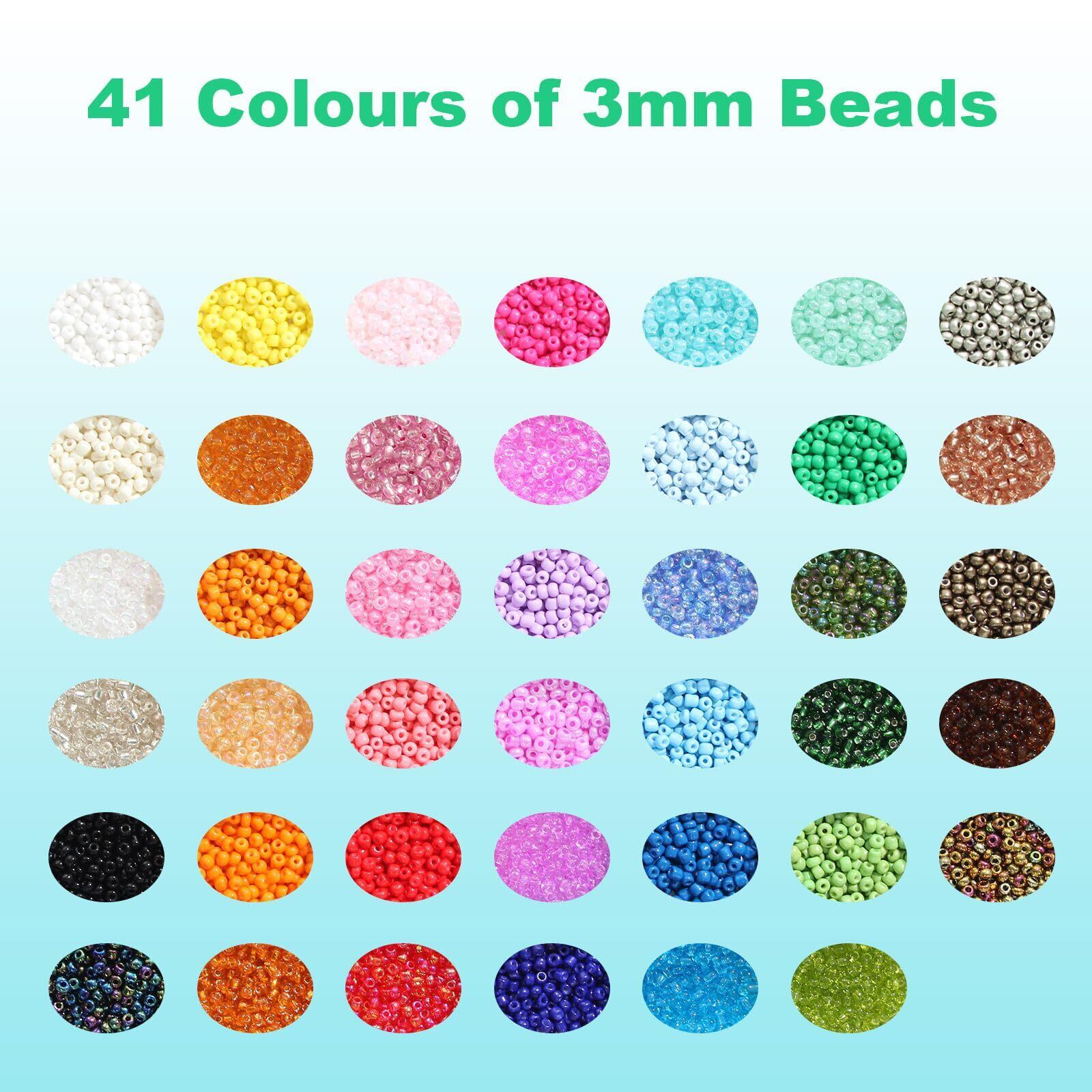 ビーズ手芸 約10250個/箱 BetterJonny 41色 3mmガラスシードビーズ キットラウンドシードビーズ アクセサリーキットDIY用品 手芸 ジュエリー用手作り