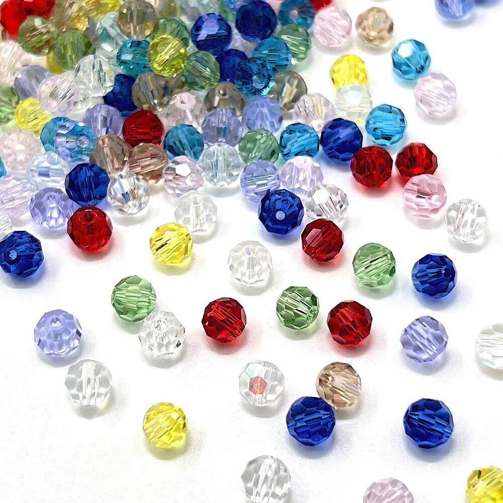 【在庫処分】ガラスビーズ 6mm 200個 ラウンドビーズ 32面カット 通し穴 クリスタル 手芸 パーツ 手作り ジュエリー アクセサリー ハンドメイド DIY (MIX)