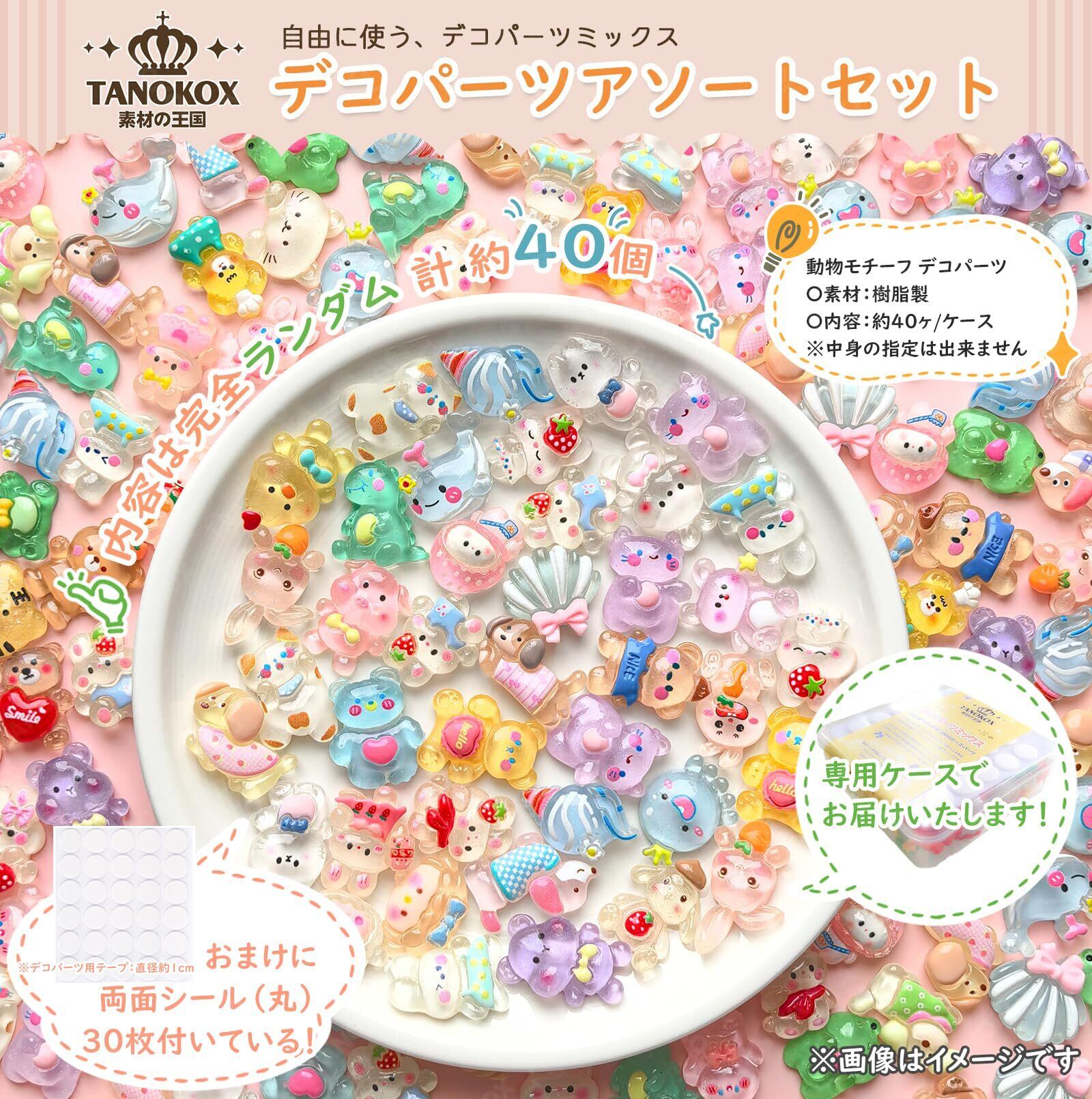 【セット内容】〇入数:およそ40個前後 〇おまけ:デコパーツ用テープ1シート 〇素材:樹脂製