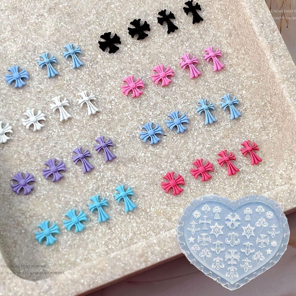 【新春セール】シリコンモールド クロス 十字架 花 星 立体 クロム モールド デコパーツ ネイルパーツ 素材 アクセサリー レジン型 工芸品 装飾 レジン 抜き型 再利用可能
