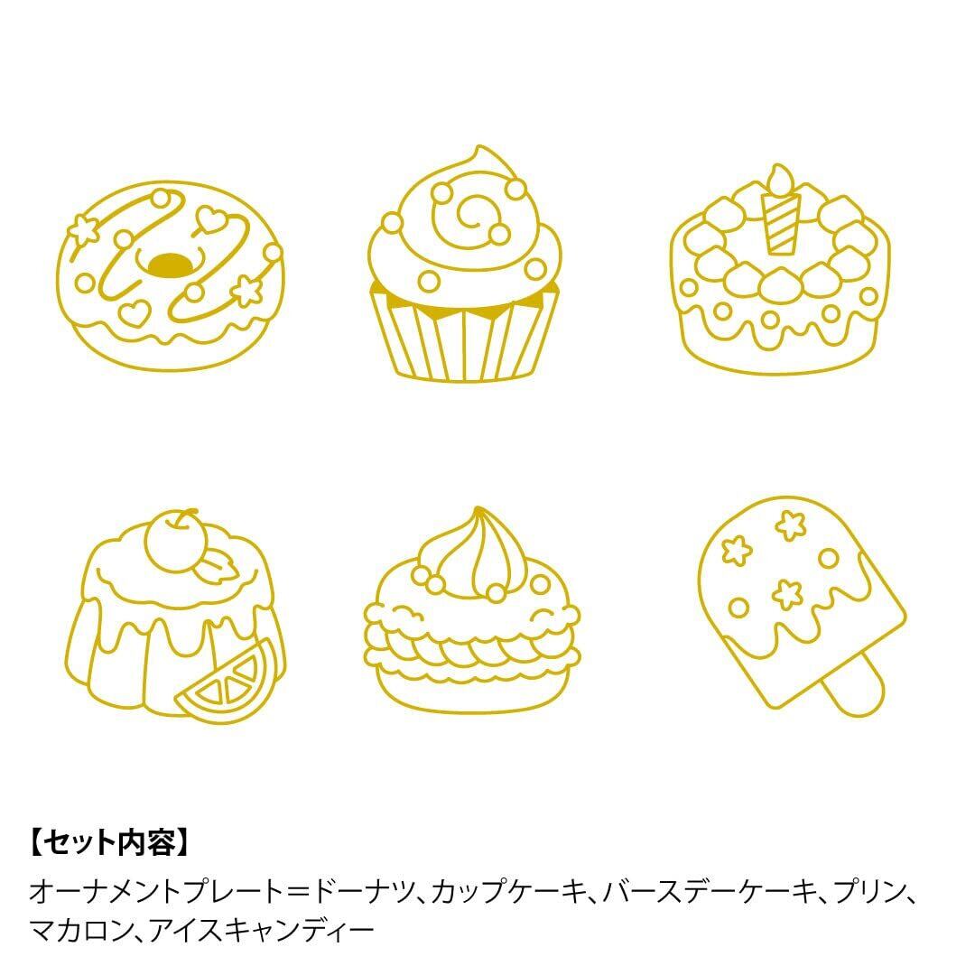 【セット内容】●オーナメントプレート(6コ):ドーナツ、カップケーキ、バースデーケーキ、プリン、マカロン、アイスキャンディー