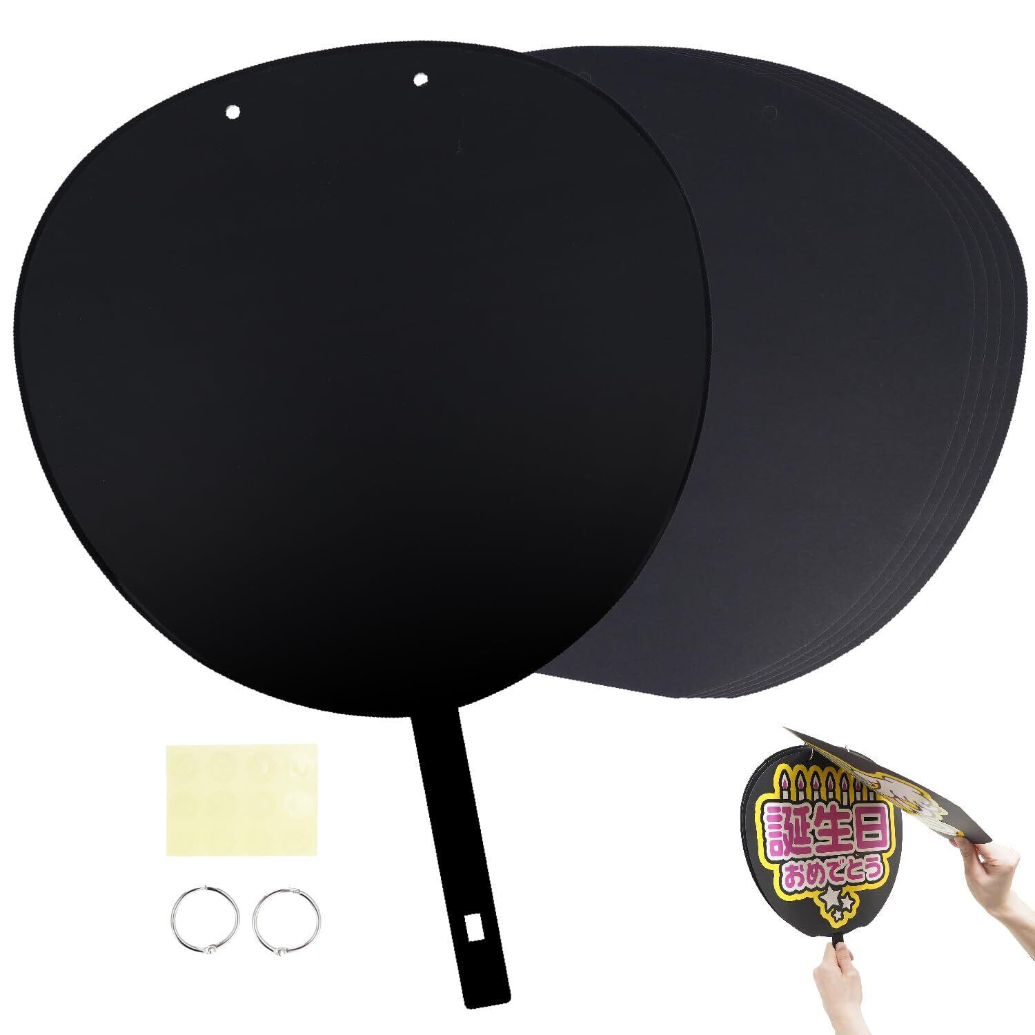 うちわ1本、厚手のカンペカード5枚、リング、補強シールのセット。