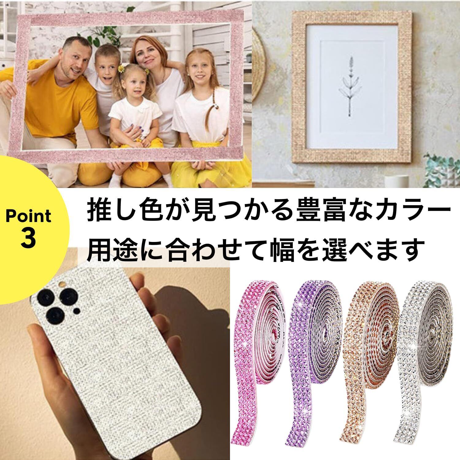 【用途いろいろ】 ネイル、スマホケース、小物のデコから、ギフトラッピング、アルバム装飾、車内インテリア、文房具、手帳、DIYクラフトまで幅広く対応。小さい粒で隙間も埋めやすく、アイデア次第で自由自在なアレンジが可能です。