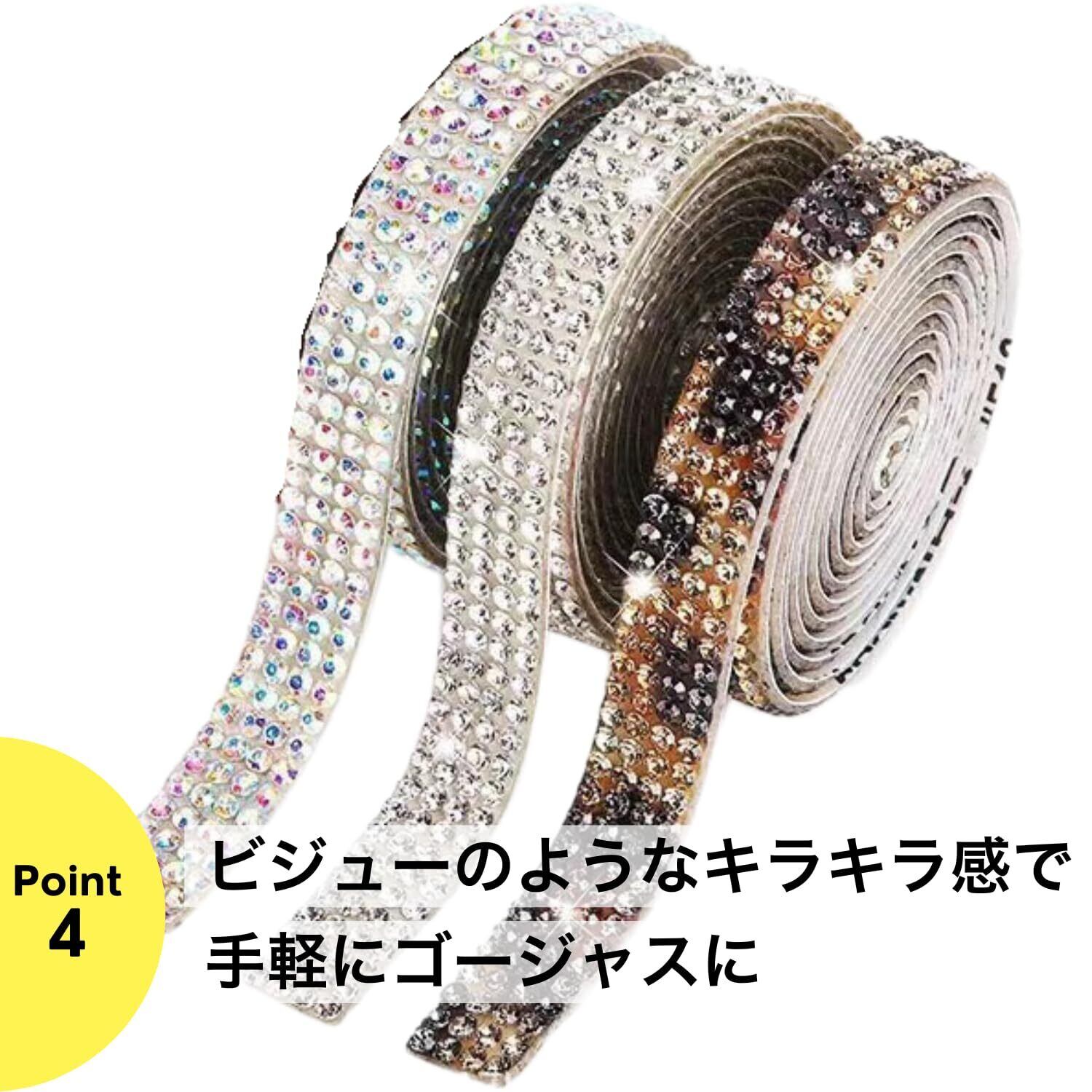ラインストーンテープ 自粘着 キラキラ デコシール 幅4.5mm 2列 レインボー 長さ90cm DIY用 多列 幅4.5mm〜18mm NANDELMO ND-0180-R04-RB-4.5mm-2L