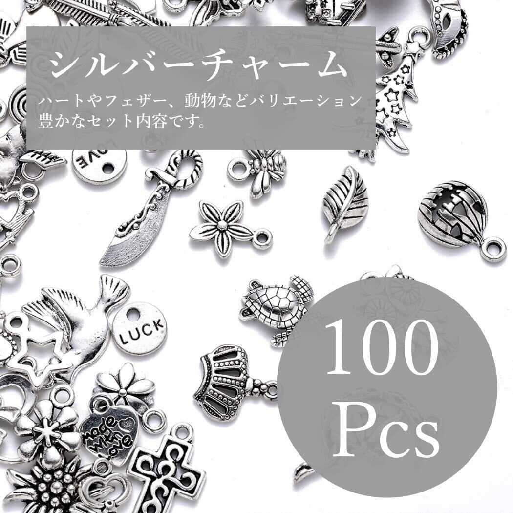 【人気商品】チャーム パーツ ペンダントトップ アクセサリーパーツ 100個入り シルバー DIY 手作りアクセサリー
