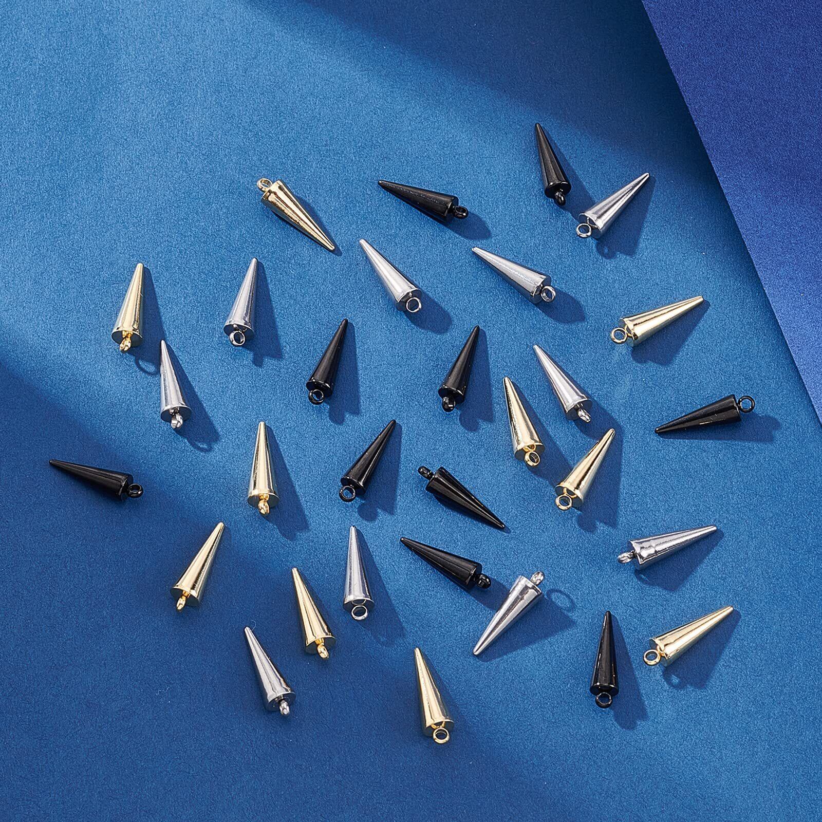 スパイク&3色:素敵な円錐の形をした金属ペンダントはゴールデン、ブラック、ステンレス色を含まれ、アクセサリー作りには欠かせないパーツ、シンプルなデザインでスパイクチャームはDIYクラフトのさまざまなニーズに適しています。