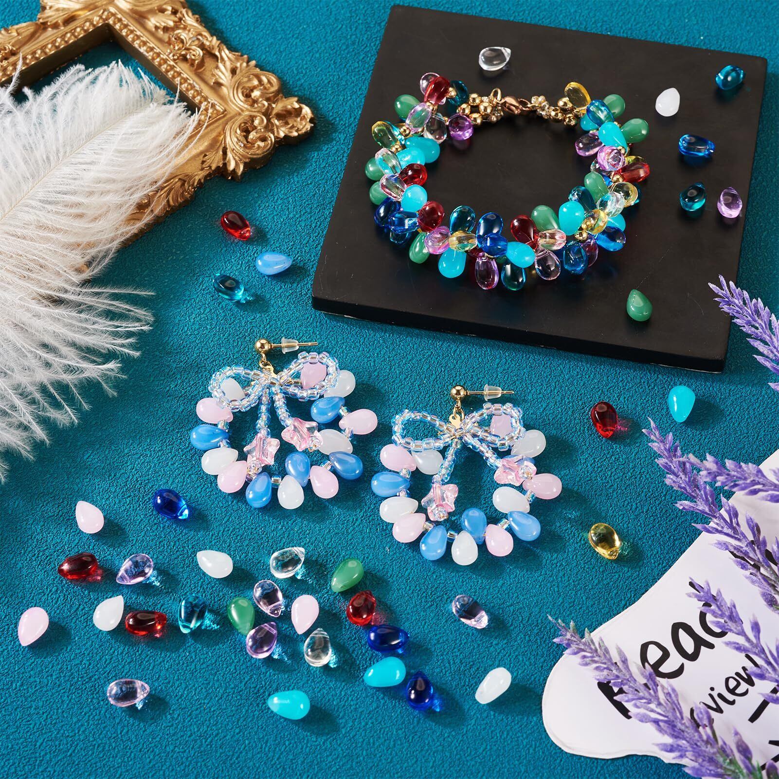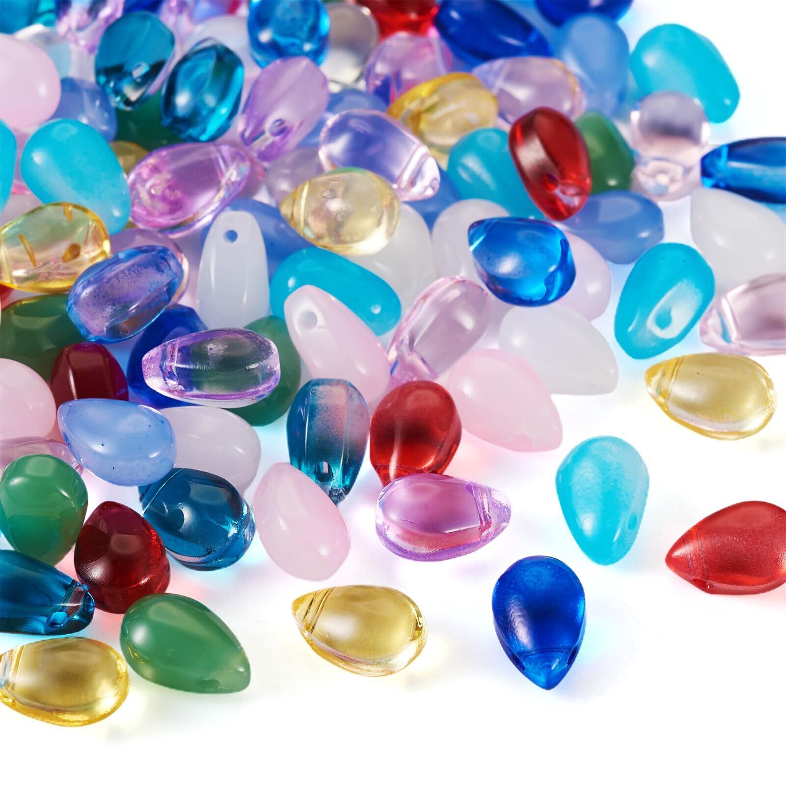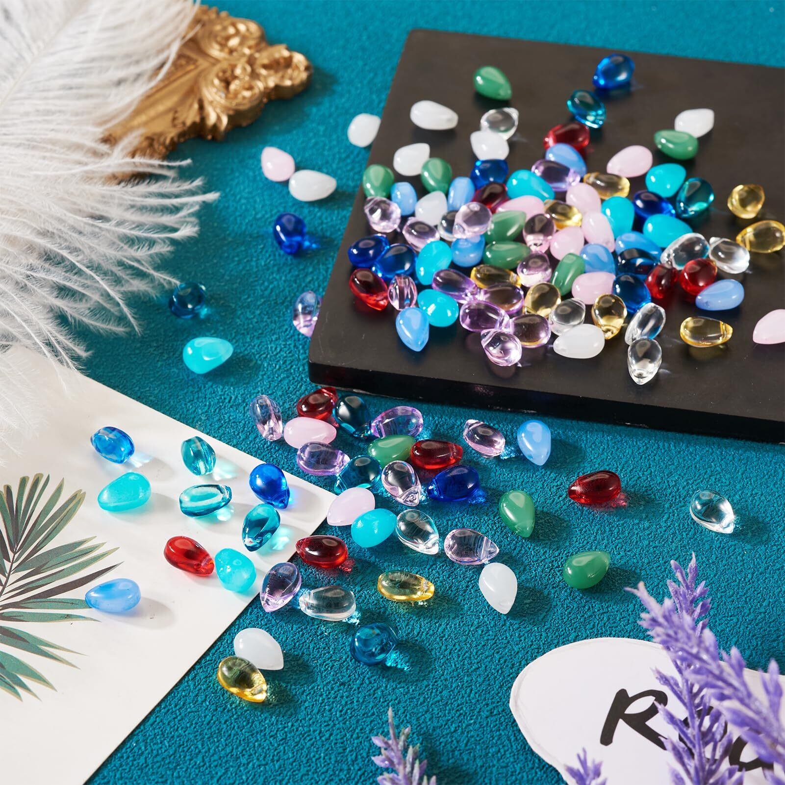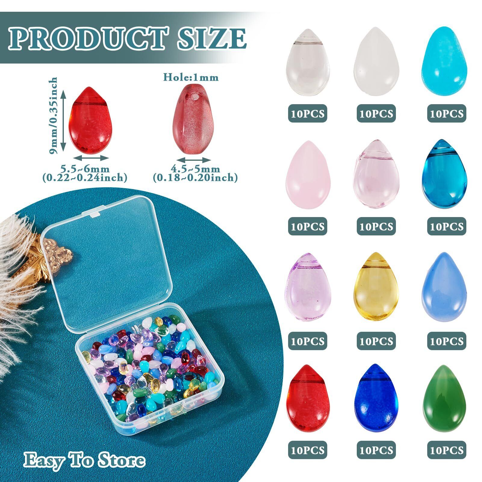 Beadthoven しずく型 ガラスビーズ ガラスチャーム 約120個/箱 カラフル 雫形 ペンダントパーツ ドロップビーズ かんざしパーツ アクセサリー材料 ジュエリー製作用 DIY飾り物 ハンドメイド イヤリング ネックレス ブレスレット 髪飾り 手芸クラフト用 手作り素材 12色セット 9x5.5~6x4.5~5mm