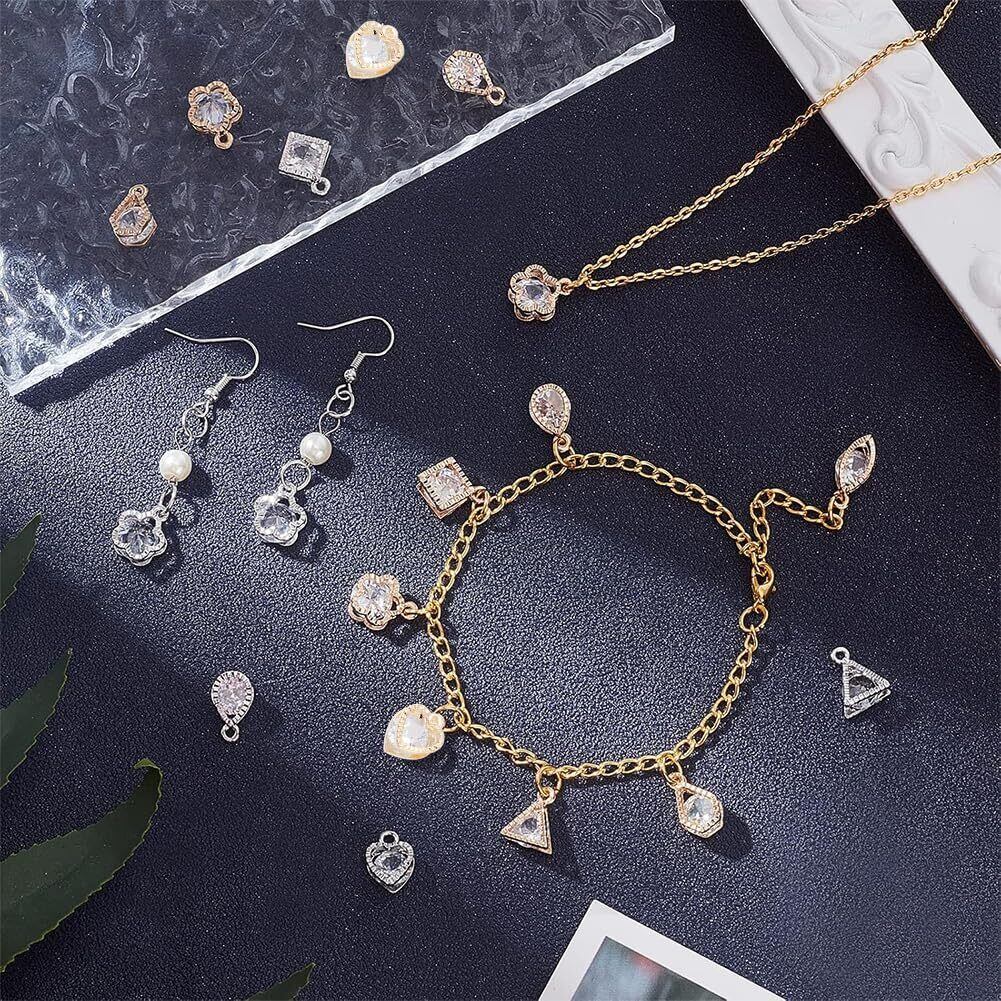 ラインストーンチャームがほどよい輝きを放ち、洗練された印象を与えられます。スタイルを選ばず気軽に身につけられ、光加減によって様々な表情を魅せてくれます。セットには、7種2色で合計14種類の、各種にそれぞれ5個いりで合計70個のたっぷりのアクセサリーパーツがあります。