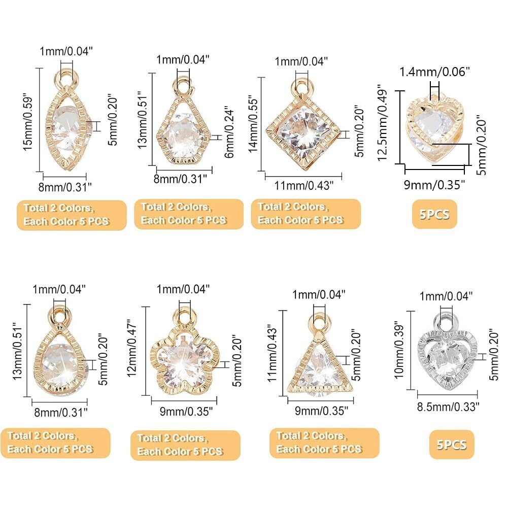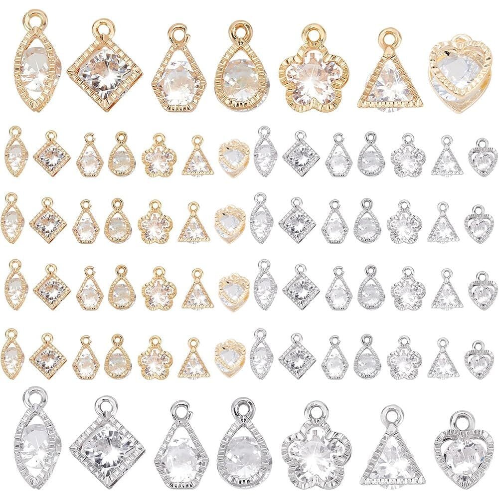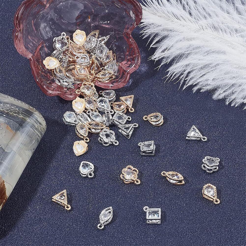 PH PandaHall チャーム パーツ ラインストーン チャーム ラインストーンペンダント ハート形 合金 キュービックジルコニア ペンダント ライトゴールド ハンドメイド アクセサリーパーツ 70個