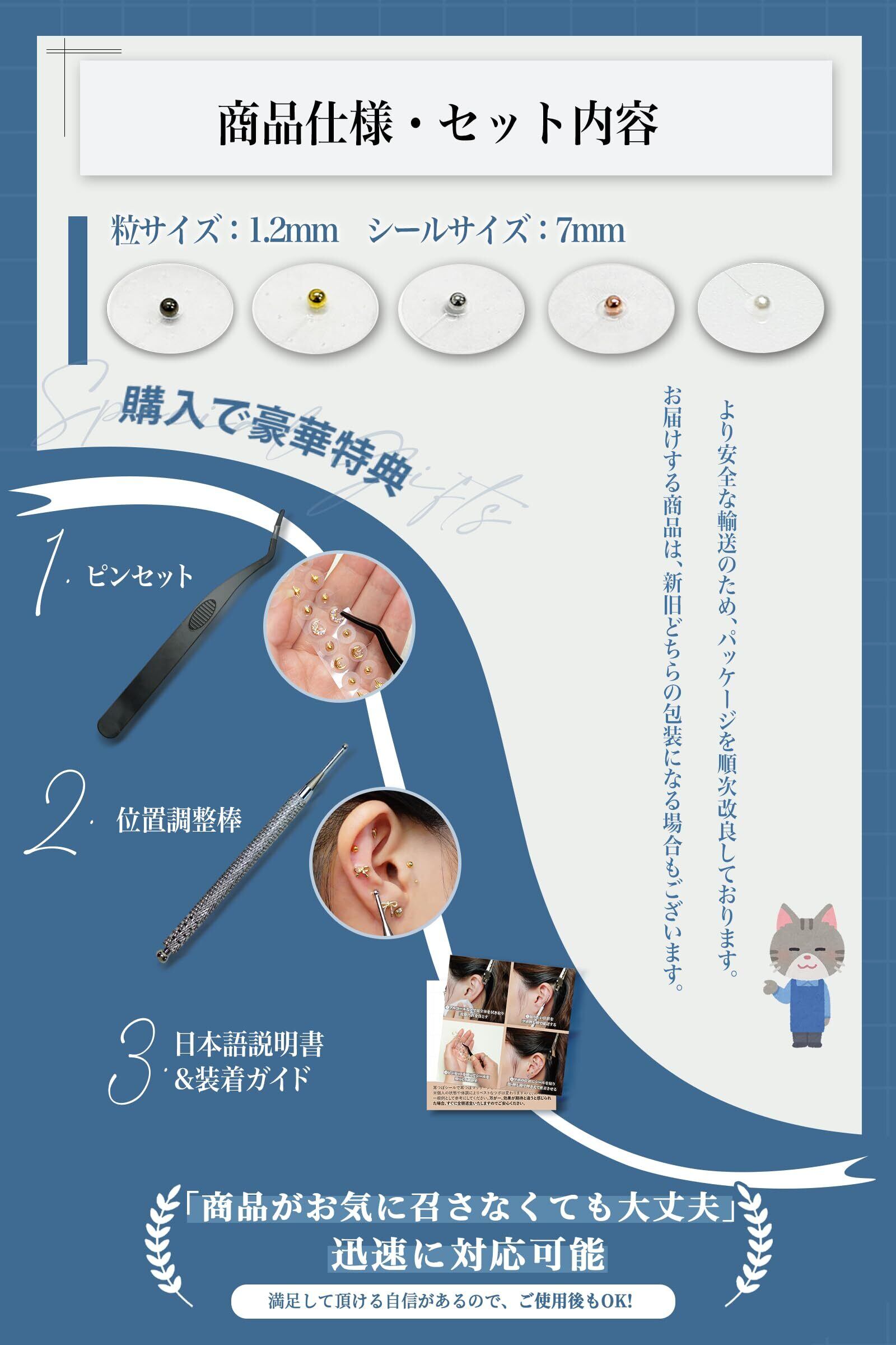 「チタン」「ゴールド」「シルバー」「ローズゴールド」「パール」のベーシック5色に加え、豊富なオリジナルデザイン(イエベ系・ブルベ系・天然石シリーズ・桜コレクションなど)から自由に組み合わせられる、耳元のファッションシールです。トレンディなDIY感覚で、デザインやカラーを自由にミックス。日々のコーディネートに合わせて、耳元に上質で繊細な輝きをプラスできます。ベースには7mm幅の極薄透明シールを採用。1.2mmの繊細な粒がさりげない上品さを演出します。優れた密着力で水に強く、長時間の装着でも剥がれにくい設計です。素材には徹底してこだわりました。高純度チタンや高品質ステンレス、色褪せない樹脂パールなどを使用。金属アレルギー対策済みで、敏感肌の方にもご安心いただけます。ピアス穴がなくても、手軽に本格的なジュエリーのようなおしゃれを楽しめる、画期的なアイテムです。特別な日のアクセントから、日常のさりげない彩りまで、様々なシーンでお楽しみいただけます。万が一商品にご満足いただけない場合も、返金・交換にて対応いたします。