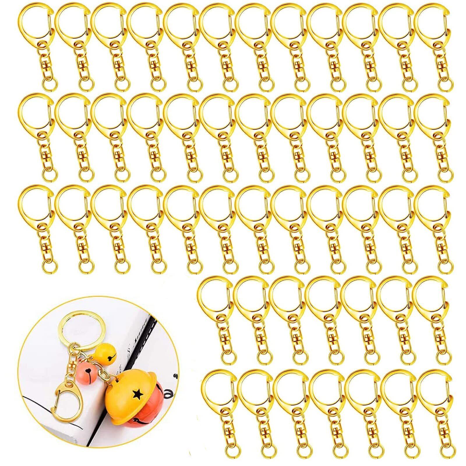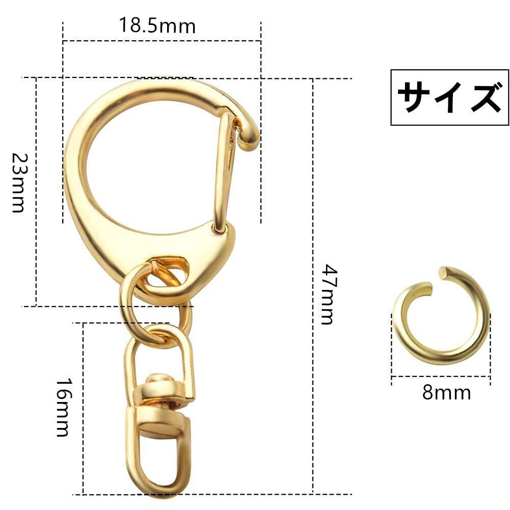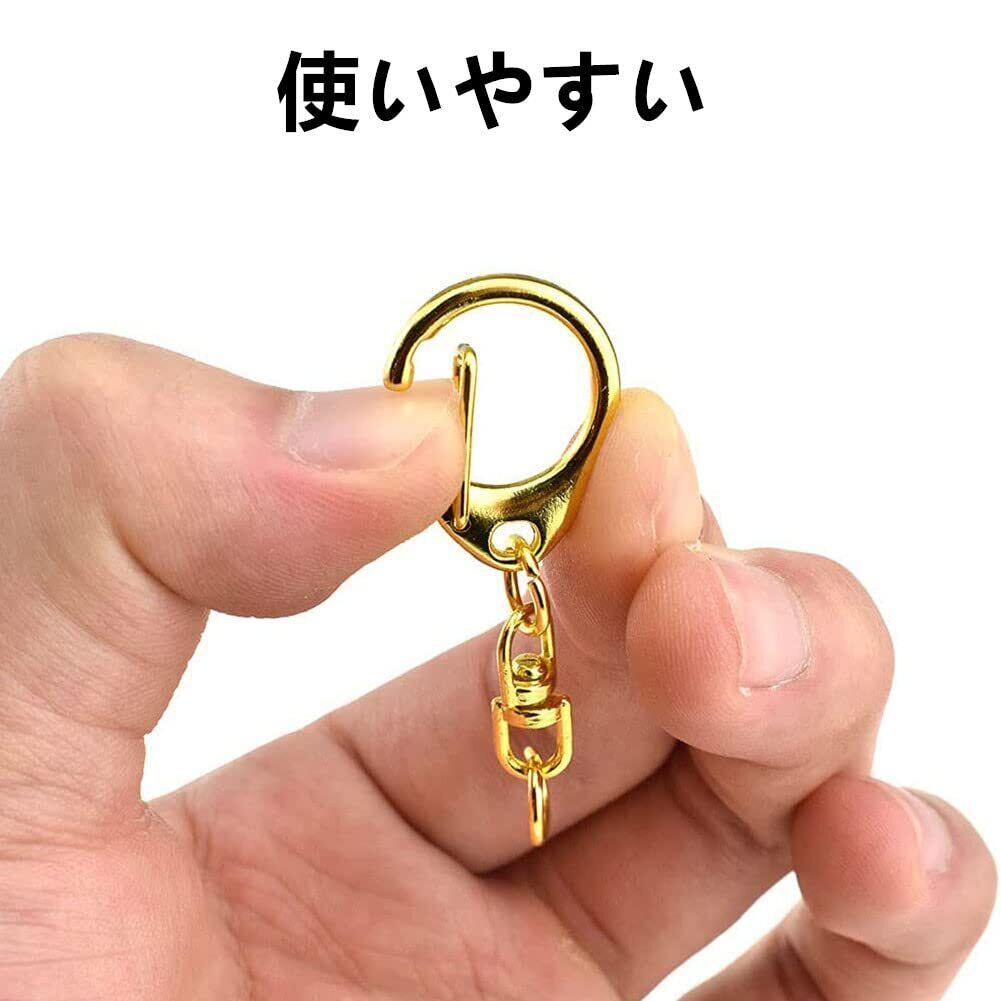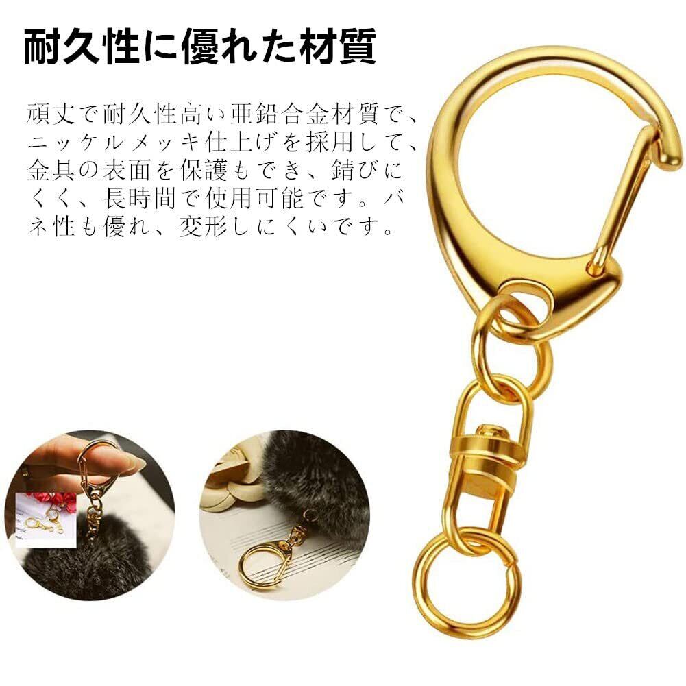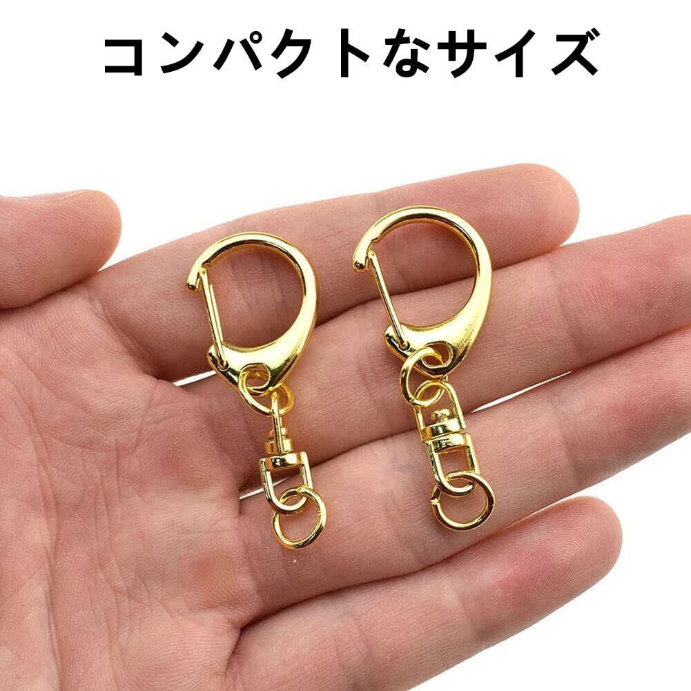 キーホルダー 金具 キーホルダーパーツ 50個入り 全長4.7CM ナスカン レジン パーツ キーホルダーパーツ 回転フック 丸カン 付き ハンドメイド キーリング アクセサリー DIY 手芸用品 (ゴールド)