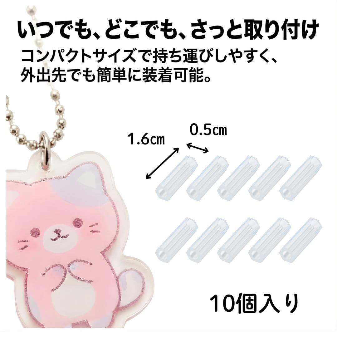 【紛失対策】キーホルダーのボールチェーンコネクタ部分に通すことで、コネクタを外れにくくし紛失を防止します。鍵やアクセサリーの不意な紛失を防ぎ、日常使いに安心をプラスします。小さく目立たず、簡単装着でしっかり固定。【携帯に便利】10個入りで、用途に応じて使い分けができます。コンパクトで持ち運びやすく、外出先でも簡単に取り付け・交換が可能。シンプルなデザインで、どんなシーンにも自然に馴染みます。【簡単装着】ボールチェーンのコネクタ部分に通すだけで、簡単に固定できます。特別な工具や技術は不要で、初めての方でも安心して使えます。手軽に装着でき、外出先での付け替えにも便利です。