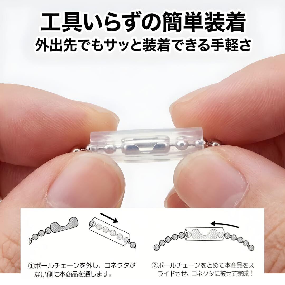【簡単装着】ボールチェーンのコネクタ部分に通すだけで、簡単に固定できます。特別な工具や技術は不要で、初めての方でも安心して使えます。手軽に装着でき、外出先での付け替えにも便利です。