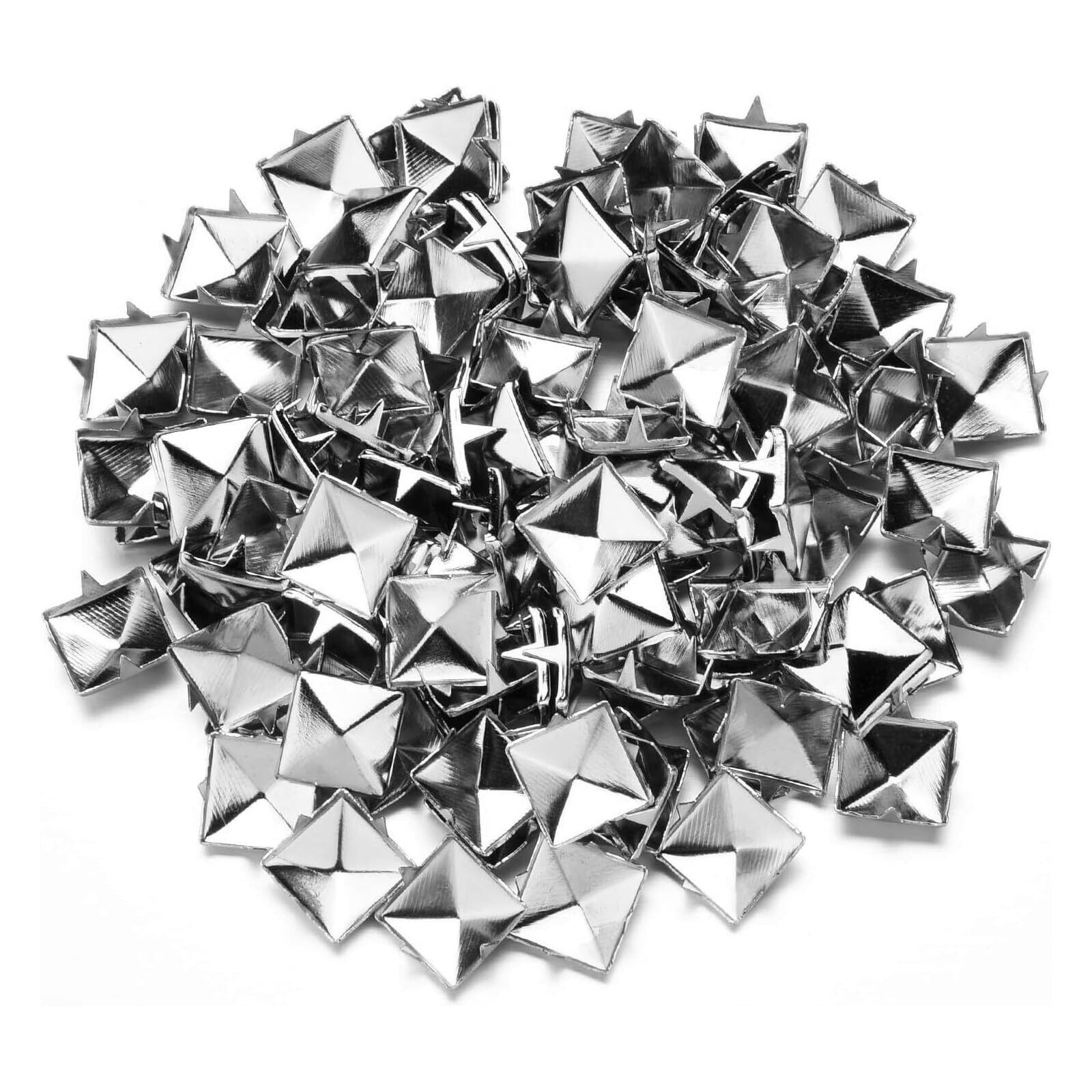 高品質素材:四角ピラミッドスタッズは高品質な鉄素材を使用し、耐久性と美しさを兼ね備えています。表面には電気メッキ加工を施しており、光沢感が長持ちするとともに、変形や錆びに強く、長期間にわたってご使用いただけます。湿気の多い環境や日常の摩耗にも耐えるため、アウトドアやファッションアクセサリーとしても最適です。シャープなエッジと立体的なデザインが特徴で、アクセントとして存在感を放ちます。