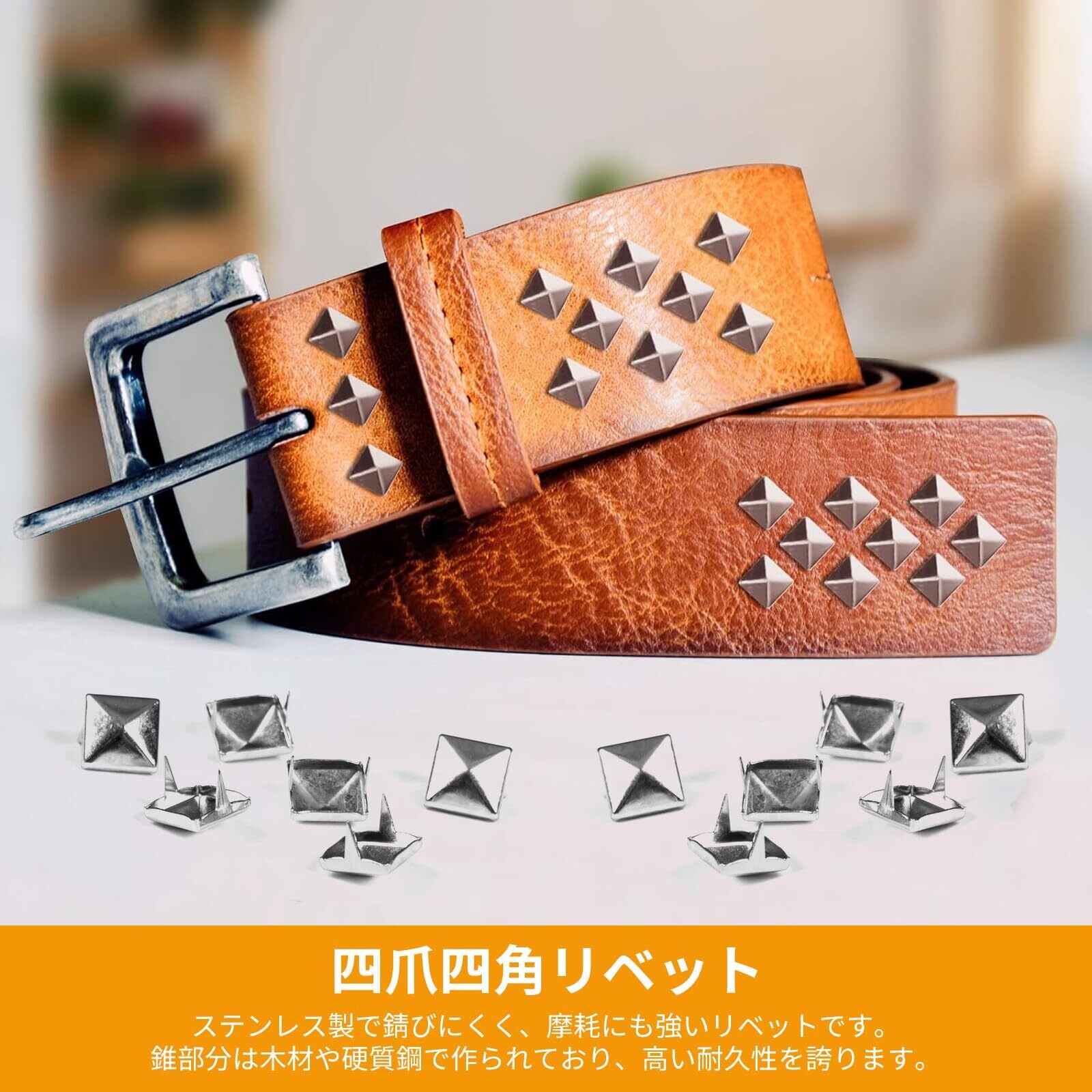 幅広い用途:ダブルクローシルバーピラミッドリベットはDIYのレザークラフトやファッションアクセサリーのカスタマイズに幅広く活用できます。手作りのレザーバッグやブレスレット、靴、ベルト、デニムジャケット、帽子など、多彩なアイテムに取り付け可能です。独特の金属質感が個性的な手仕事にアクセントを加え、クールな雰囲気を演出します。