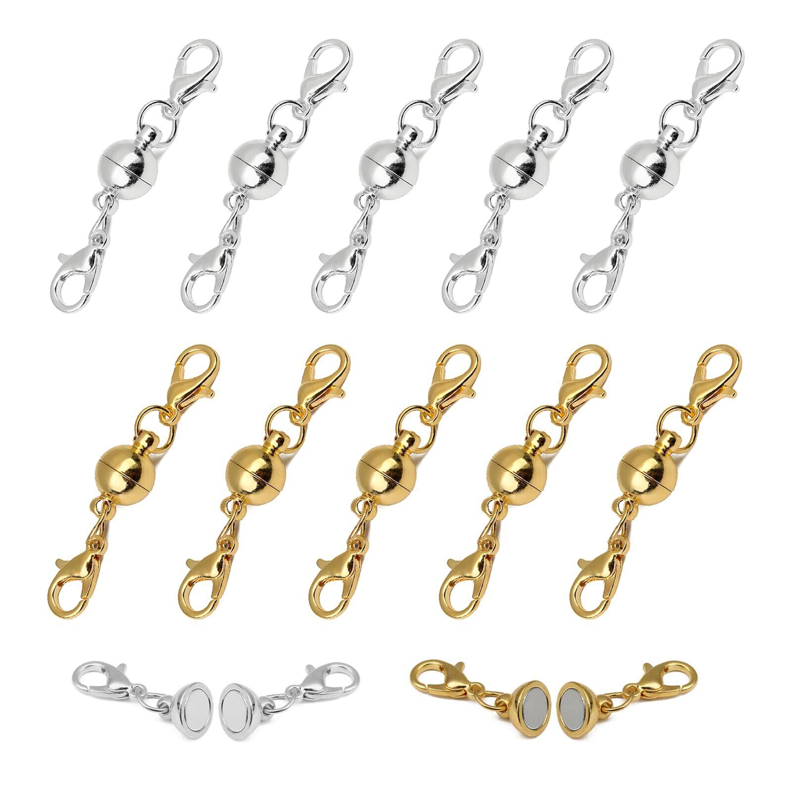 【数量限定】ネックレス マグネット 留め具 マグネットクラスプ 簡単装着 磁気クラスプ エンドパーツ ジュエリー用 延長用金具 エンドパーツ ジュエリー用 延長用金具 磁気クラスプ DIY用 クラフト作り 単装着 接続端 ブレスレットと首飾り ネックレスと宝飾品 (6mm シルバー+ゴールド 各5個)