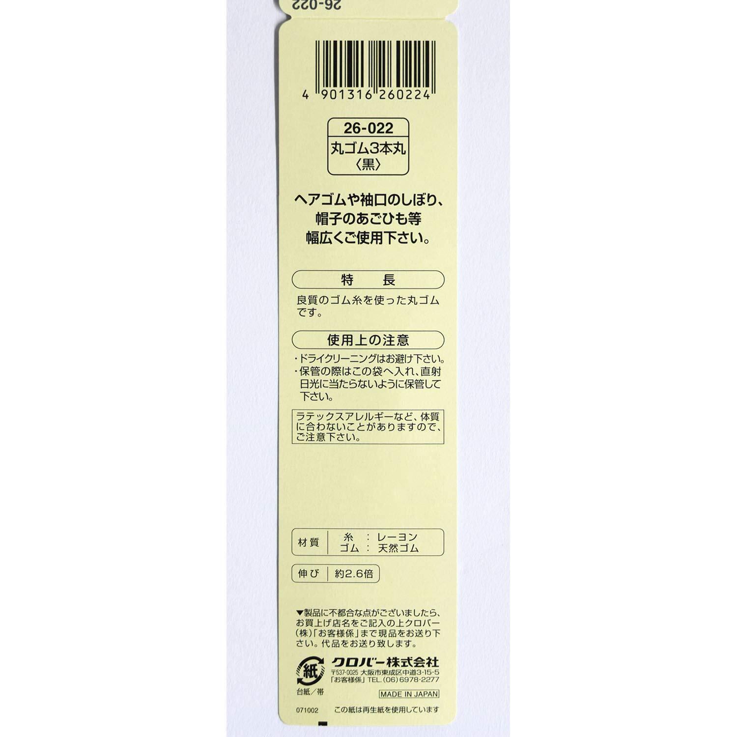 【特価商品】クロバー(Clover) Clover 丸ゴム 3本丸 太さ約2mm 3.5m巻 黒 26-022